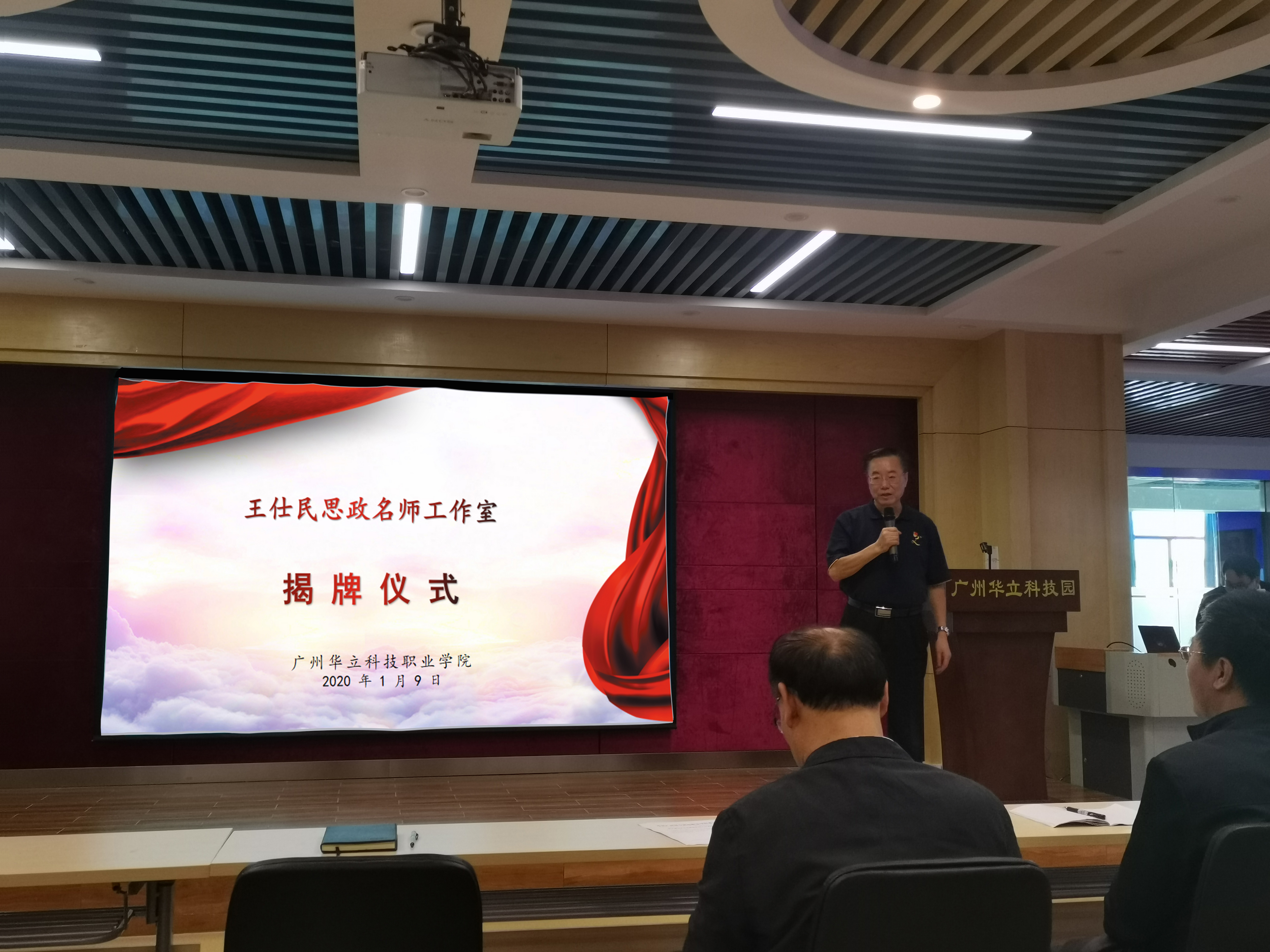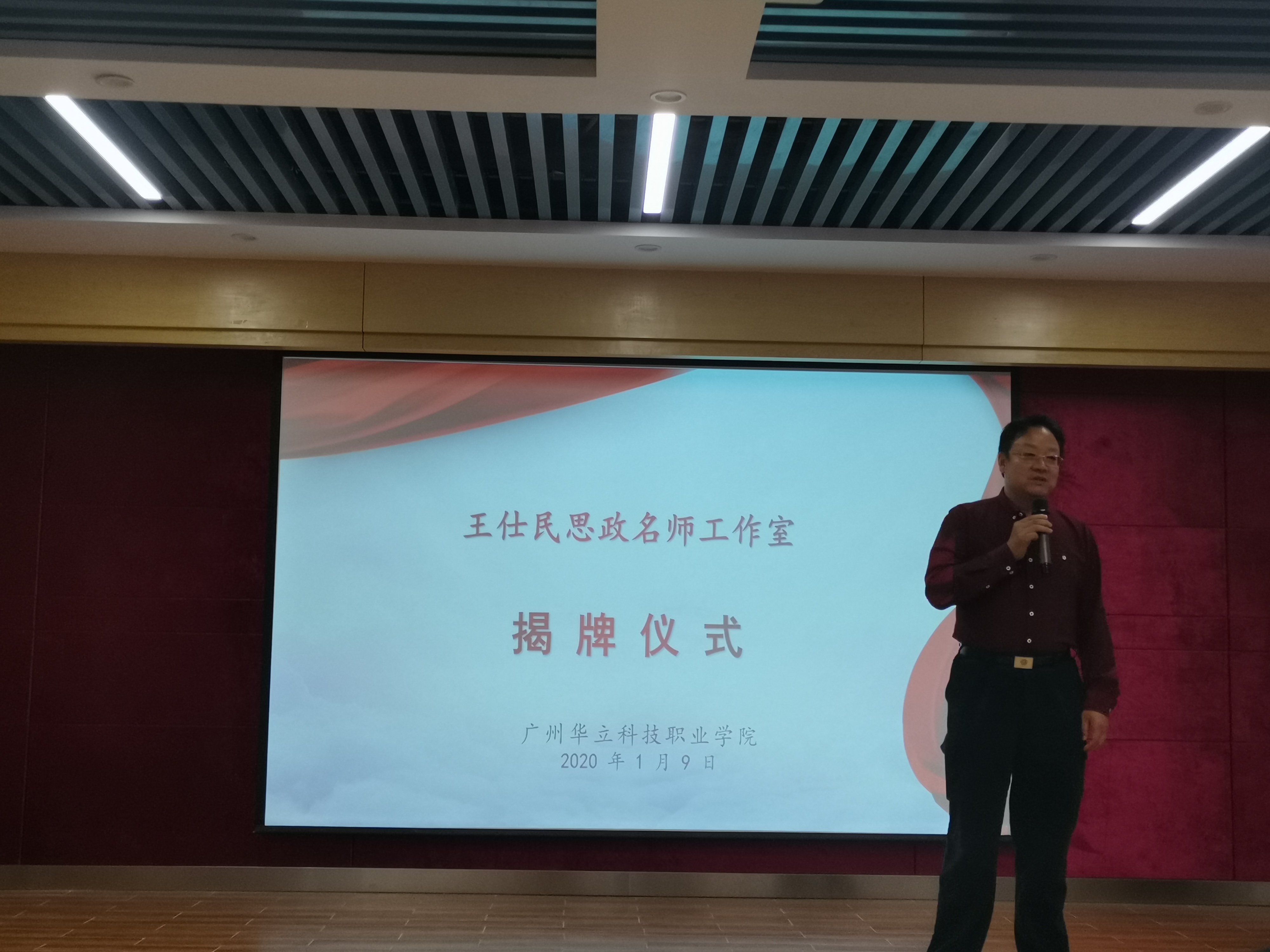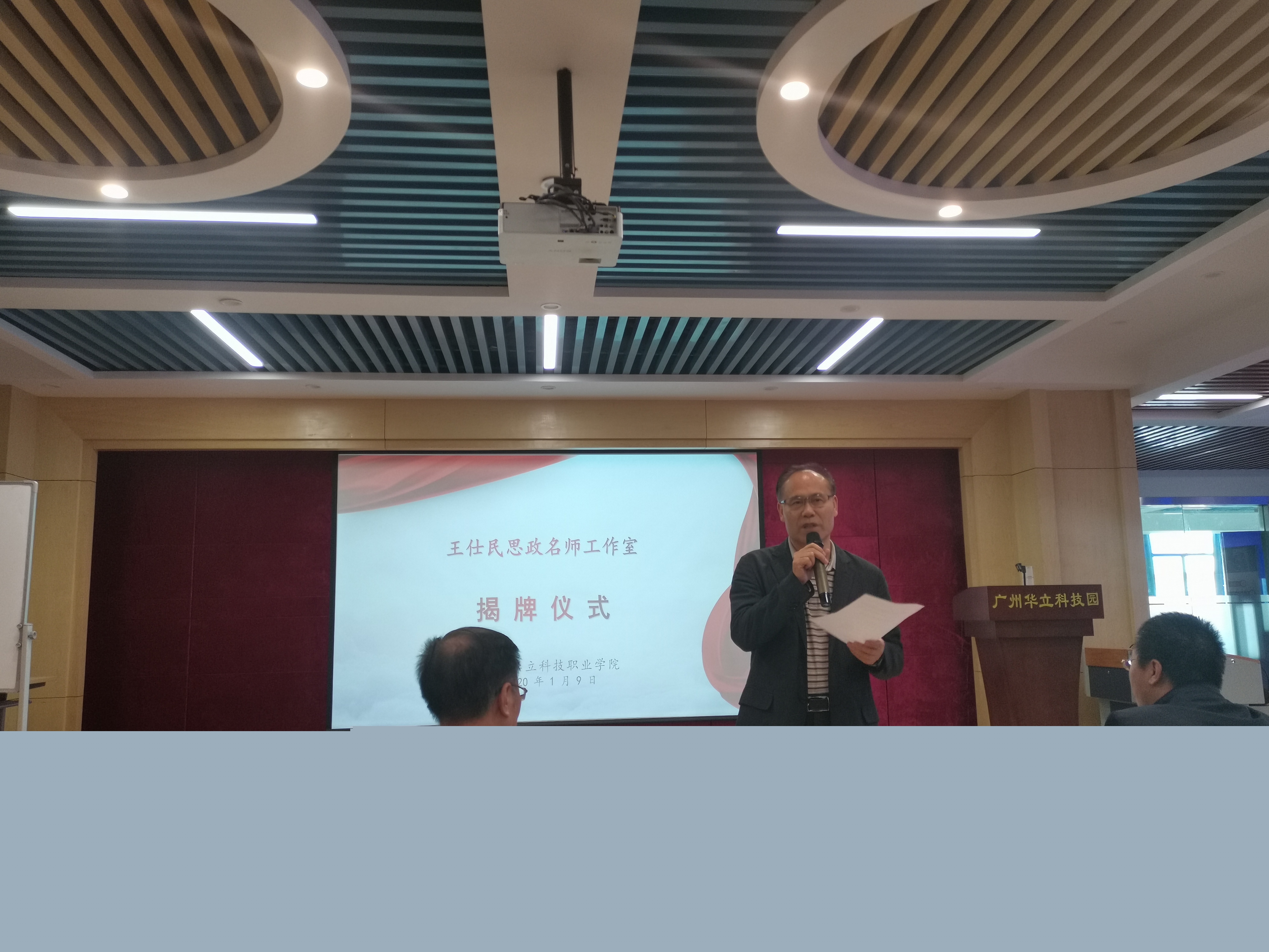 1月9日下午,廣州華立科技職業(yè)學(xué)院王仕民思政名師工作室授牌儀式在科技樓舉行。學(xué)校高度重視此次活動(dòng),校黨委書記林偉健、黨委副書記高堯來(lái)以及馬龍海、馬俊、易健民等學(xué)校領(lǐng)導(dǎo)出席揭牌儀式?;顒?dòng)由校黨委委員、副校長(zhǎng)馬俊主持。學(xué)校中層干部、黨務(wù)干部、全體思政教師、名師工作室領(lǐng)銜人及工作室成員參加此次活動(dòng)。