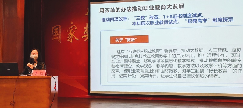 廣東教育出版社李霞主任做了《用改革的辦法推動職業(yè)教育大發(fā)展》主題講座,重點講解了什么樣的教材是“好”教材,詳細闡述了國家最新“十三五”職業(yè)教育國家規(guī)劃教材編寫的相關(guān)要求等。