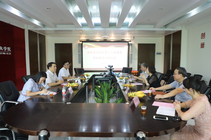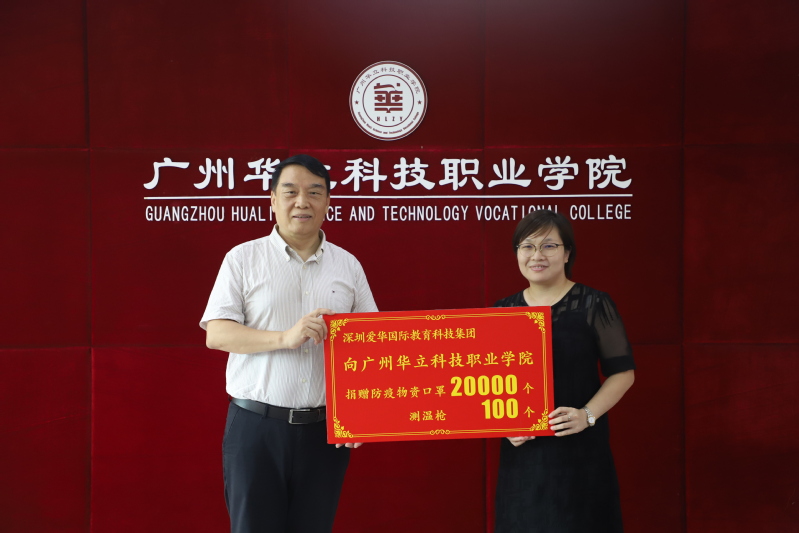 9月15日上午,學校在行政樓305舉行深圳愛華國際教育科技集團(以下簡稱愛華集團)防疫物資捐贈儀式。愛華集團董事、副總裁郭厚澤等,華立職院副校長、工會主席馬俊,校辦主任朱少先,教務處處長何志宏、副處長林偉烜,培訓學院副院長陶必芝等參加儀式。