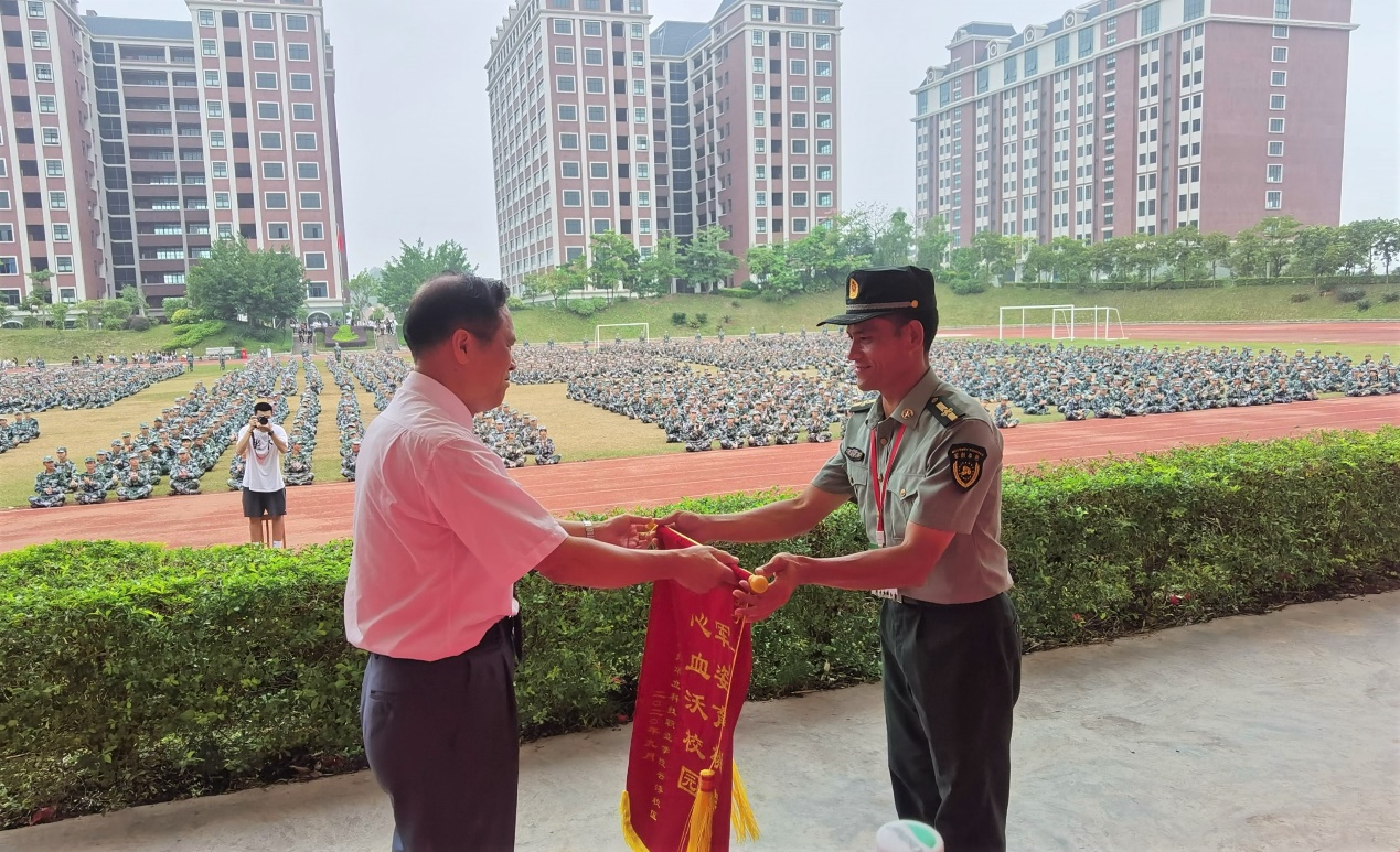 黃樂覽副校長向承訓(xùn)部隊(duì)贈送錦旗