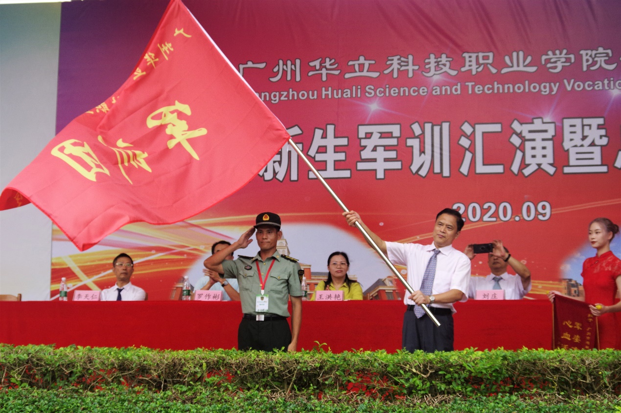 黃樂覽副校長接回軍訓(xùn)團(tuán)團(tuán)旗