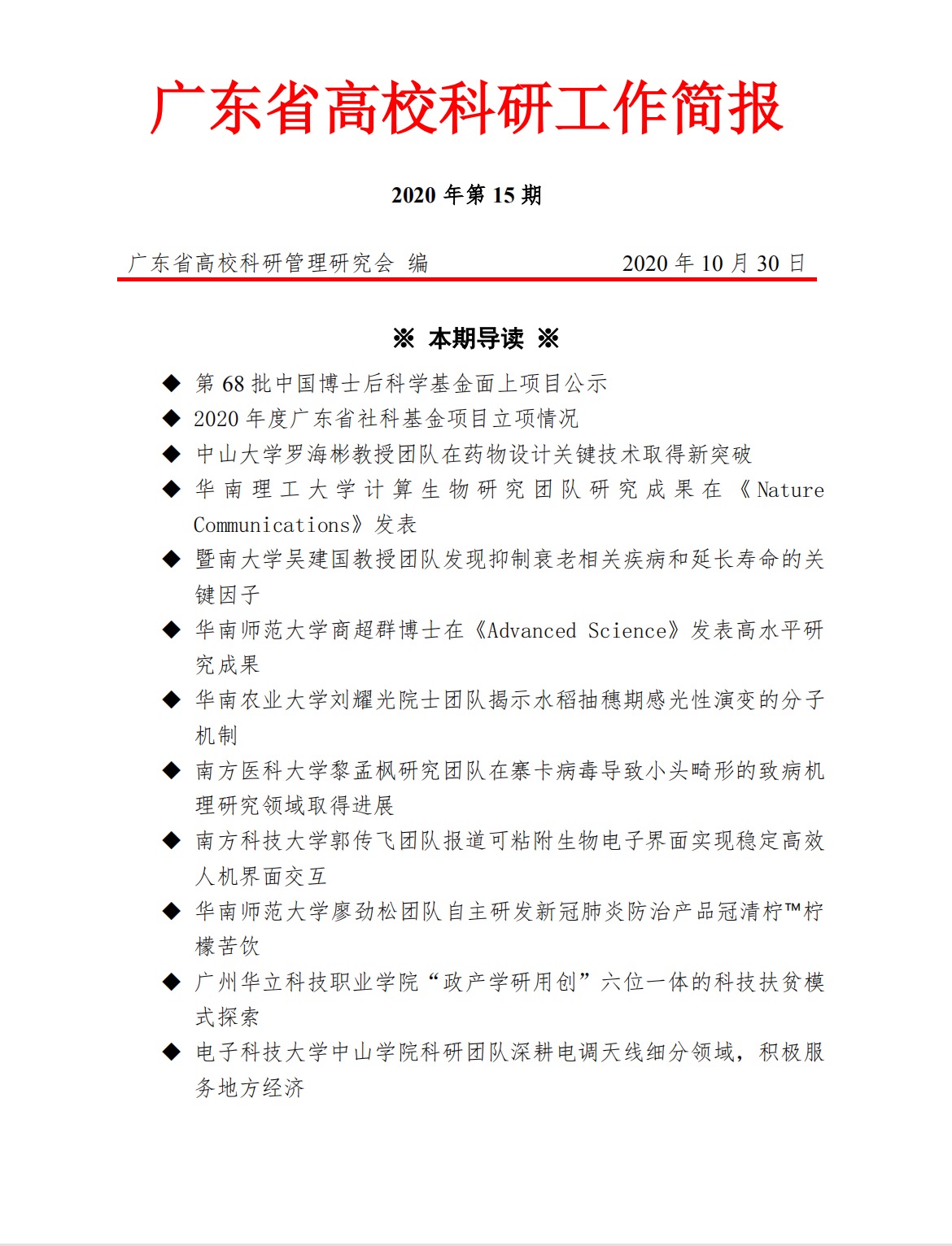 2020年10月30日,《廣東省高??蒲泄ぷ骱唸蟆罚?/span>2020年第15期)《“政產(chǎn)學研用創(chuàng)”六位一體的科技扶貧模式探索》重點報道了我?!班l(xiāng)村振興”和“脫貧攻堅”工作。
