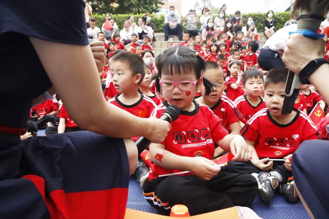 省一幼的大班、中班、小班幼兒,還分別進行了歌舞《童心向黨》、集體操《紅心閃閃》以及合唱《東方紅》《紅太陽照山河》等文藝表演,以生動活潑的形式表達愛國愛黨之情。