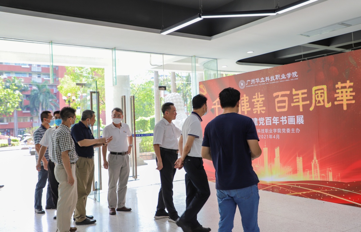 會后,巡回指導組參觀了校園,到圖書館觀看了“千秋偉業(yè)、百年風華——慶祝建黨百年書畫展",對我校黨建宣傳氛圍、校園文化環(huán)境及黨史學習教育開展形式與成效給予肯定。