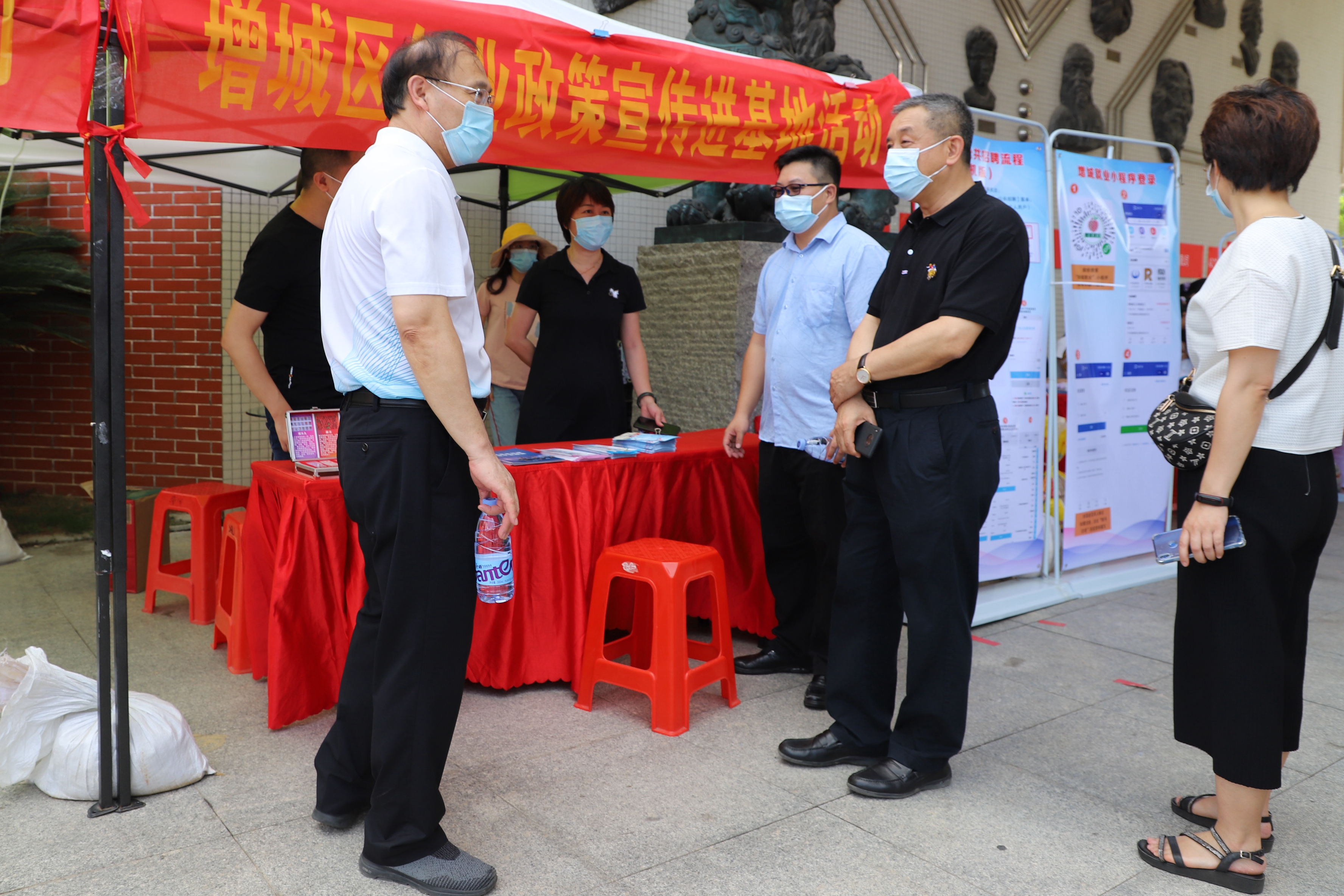 為嚴把疫情防控關,招聘會活動采取實行分時段、間隔性入場,現(xiàn)場僅設置單個出入口,入場者須出示健康碼、測量體溫,掃碼實名登記。工作人員動態(tài)掌握招聘會場內(nèi)人員實時數(shù)據(jù),及時限流,確保場內(nèi)人員不擁擠、不扎堆。