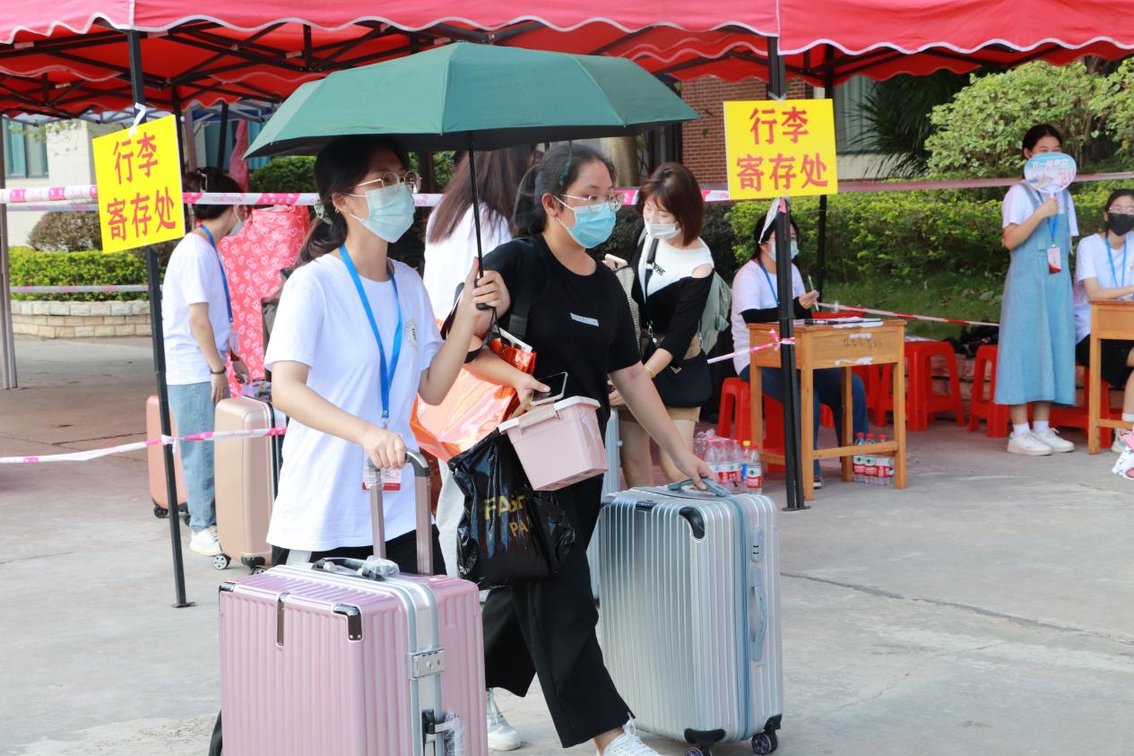 為了迎接他們,學(xué)校廣州校區(qū)和云浮校區(qū)早早就做好了準(zhǔn)備。根據(jù)疫情防控要求,為提高學(xué)校疫情防控應(yīng)急處置能力,保障新生報(bào)到安全順暢,學(xué)校在新生返校前開展了疫情防控應(yīng)急綜合演練,學(xué)校大門設(shè)置了查看健康碼、體溫檢測、行李消毒等環(huán)節(jié),嚴(yán)格把控防疫關(guān)。據(jù)悉,新生持48小時(shí)核酸檢測結(jié)果到校,到達(dá)學(xué)校后,新生完成體溫測量、健康碼查驗(yàn)等步驟,由迎新志愿者引領(lǐng)至宿舍入住。