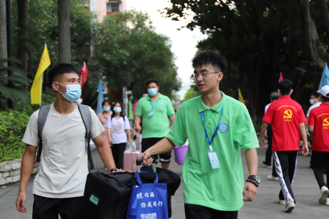 “同學(xué),宿舍在那邊,我來幫你拿行李!”
