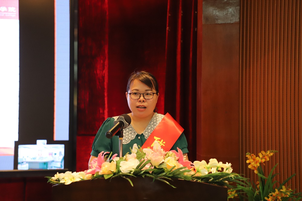 獲的今年省“南粵優(yōu)秀教師”稱號的閔小翠老師作為優(yōu)秀教師代表發(fā)言,分享了自己參與計算機信息工程學(xué)院的籌建到學(xué)院發(fā)展壯大的歷程,分享了在教學(xué)科研方面的心得體會,指出作為一名教師既感到驕傲和自豪,又倍感責任,倍添動力。