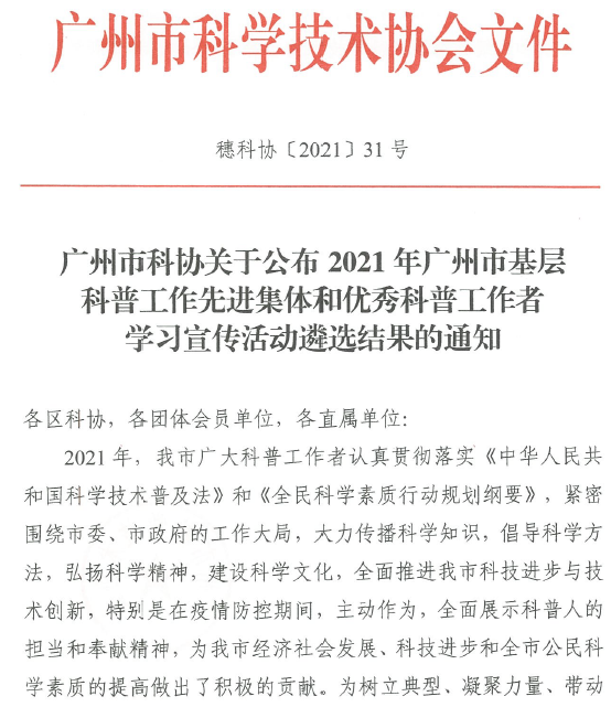 2021年9月17日,廣州市科協(xié)公布了2021年廣州市基層科普工作先進(jìn)集體和優(yōu)秀科普工作者名單,我校沉香繁育研究所所長(zhǎng)、廣州市科普名師李向林教授榮獲“廣州市基層優(yōu)秀科普工作者”榮譽(yù)稱號(hào)。