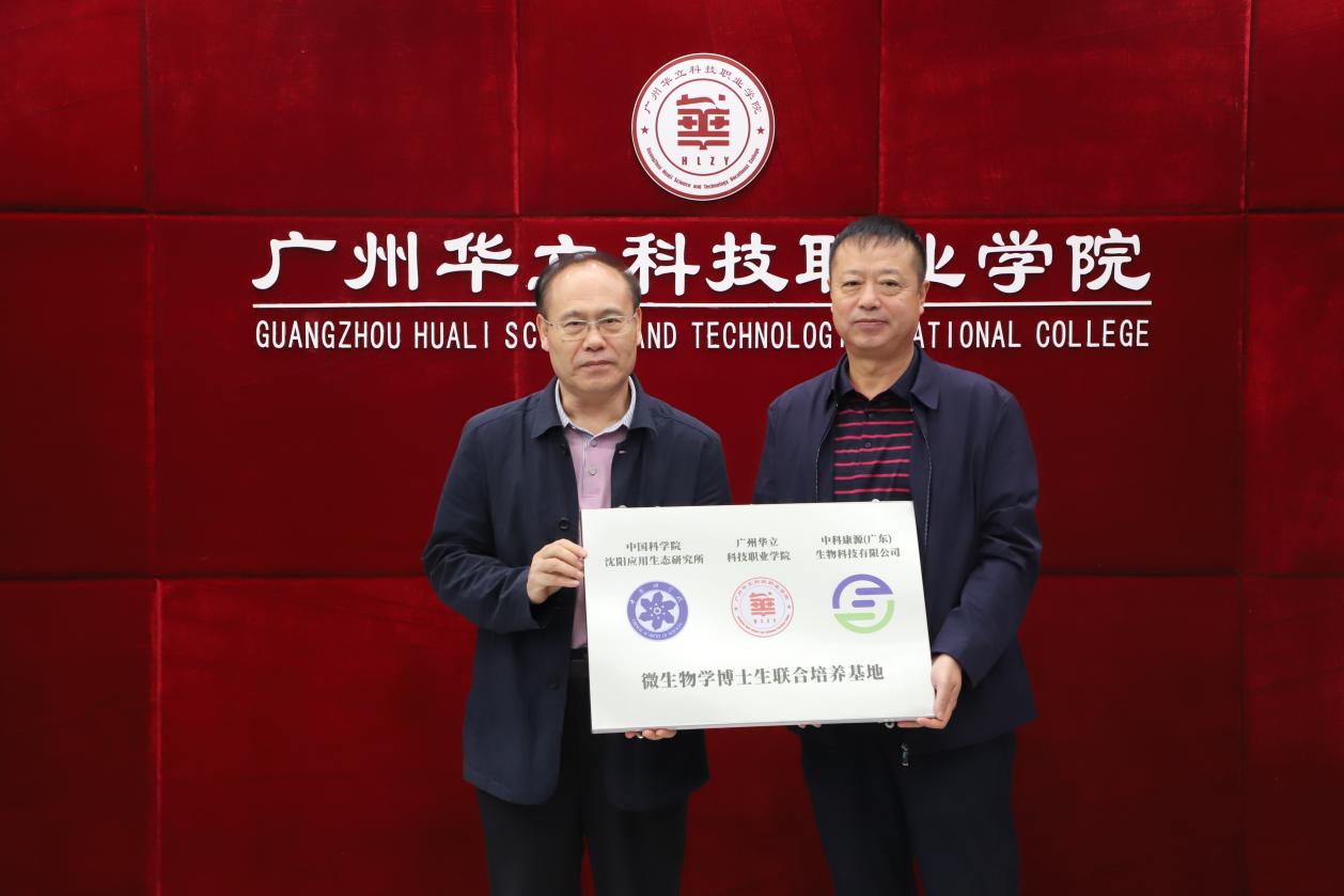 隨后,我校馬龍海執(zhí)行校長與中科康源金振庫董事長進(jìn)行了互相授牌儀式。金振庫董事長代表中科院沈陽應(yīng)用生態(tài)研究所與我校共建微生物學(xué)博士生聯(lián)合培養(yǎng)基地,旨在借助華立職院在廣東省大健康領(lǐng)域的影響力和號召力,通過健康學(xué)院博士生導(dǎo)師雷毅雄教授和藥學(xué)專業(yè)張志勇教授等專家,聯(lián)合中科院微生物學(xué)專業(yè)博士生導(dǎo)師和博士生資源,開展大健康領(lǐng)域的科學(xué)普及活動。從專業(yè)建設(shè)和內(nèi)涵發(fā)展等多方面進(jìn)行改革探索,對接產(chǎn)業(yè)發(fā)展,深入產(chǎn)業(yè)實踐,讓學(xué)校在合作中受益、師生在活動中成長、產(chǎn)教融合工作取得新突破。