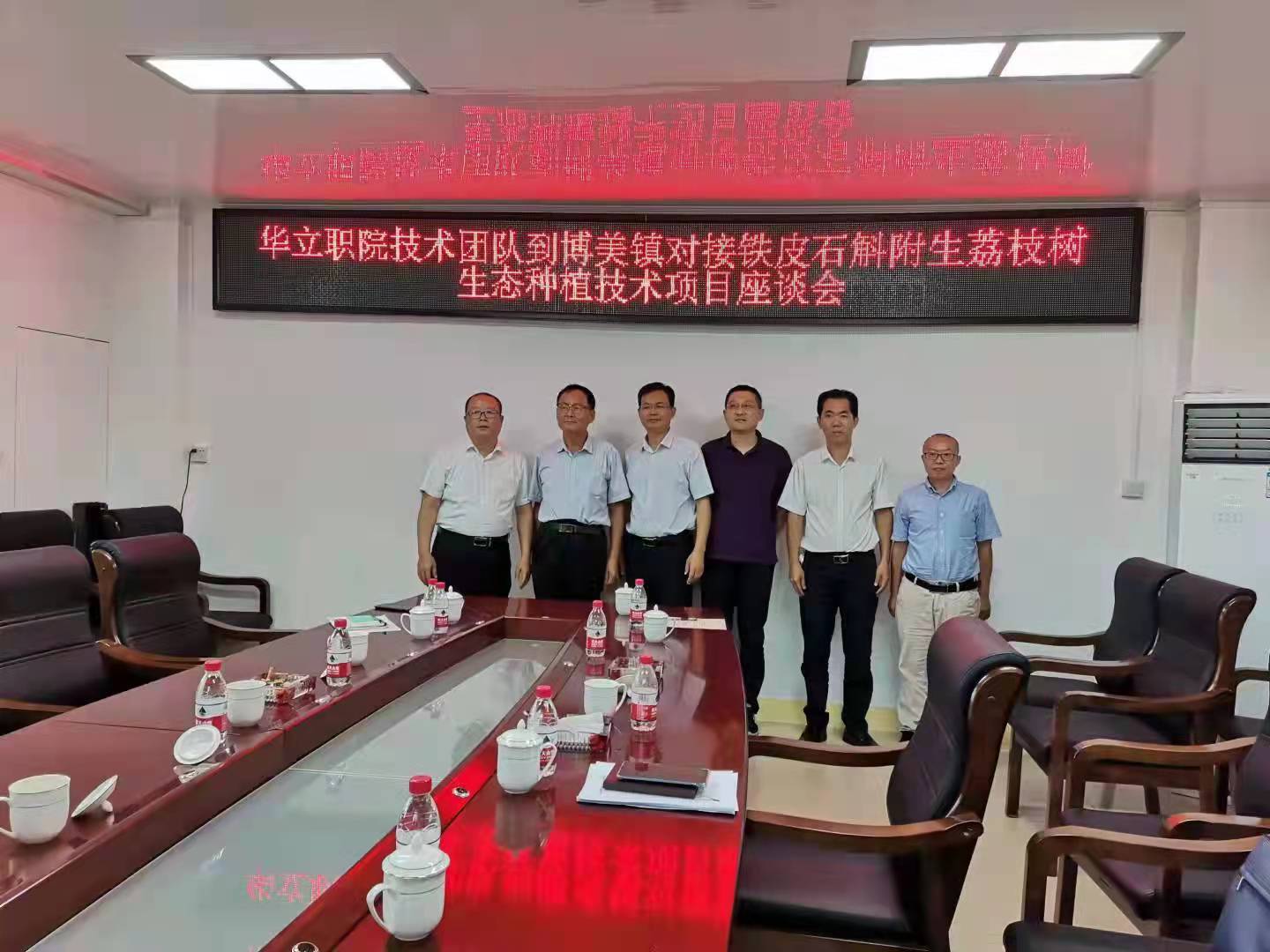2021年8 月31 日,李向林教授團(tuán)隊(duì)深入陸豐市博美鎮(zhèn),與鎮(zhèn)委、鎮(zhèn)政府、鎮(zhèn)農(nóng)委辦、部分村委和省委駐鎮(zhèn)幫扶工作隊(duì)負(fù)責(zé)人等同志開(kāi)展交流,組織召開(kāi)了鐵皮石斛附生荔枝樹(shù)生態(tài)種植技術(shù)項(xiàng)目對(duì)接座談會(huì)。會(huì)上鎮(zhèn)黨委書(shū)記陳少游和鎮(zhèn)長(zhǎng)盧漢陽(yáng)介紹了鎮(zhèn)荔枝樹(shù)種植情況和發(fā)展需求,我校團(tuán)隊(duì)詳細(xì)介紹鐵皮石斛附生荔枝樹(shù)生態(tài)種植技術(shù)的環(huán)境條件需求,產(chǎn)業(yè)的投入、產(chǎn)出概況,市場(chǎng)前景等。會(huì)議圍繞鐵皮石斛附生荔枝樹(shù)生態(tài)種植技術(shù)項(xiàng)目的試點(diǎn)選擇、種植規(guī)模、實(shí)施路線、銷售渠道等方面進(jìn)行了初步研討。