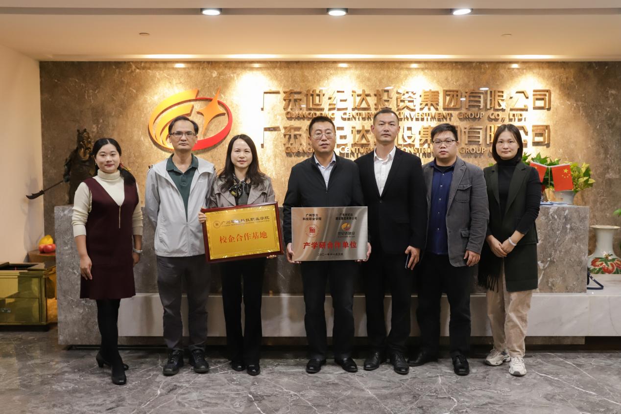 為深化產(chǎn)教融合、校企合作,探索校企合作的長效機制,2021年11月11日上午,廣州華立科技職業(yè)學院與廣東世紀達建設(shè)集團有限公司(以下簡稱“世紀達”)校企合作簽約、授牌儀式在世紀達佛山總部舉行。華立職院副校長高堯來、校外教學與就業(yè)處處長鐘文浩、城建學院副院長李桂林、校外副主任劉燕,世紀達副總經(jīng)理羅衛(wèi)軍、陳子君,公司人事主管梁嘉琳、專員周瑞婷、陳泳儀、盧焯慧以及我院2019級實習生代表參加了此次活動。