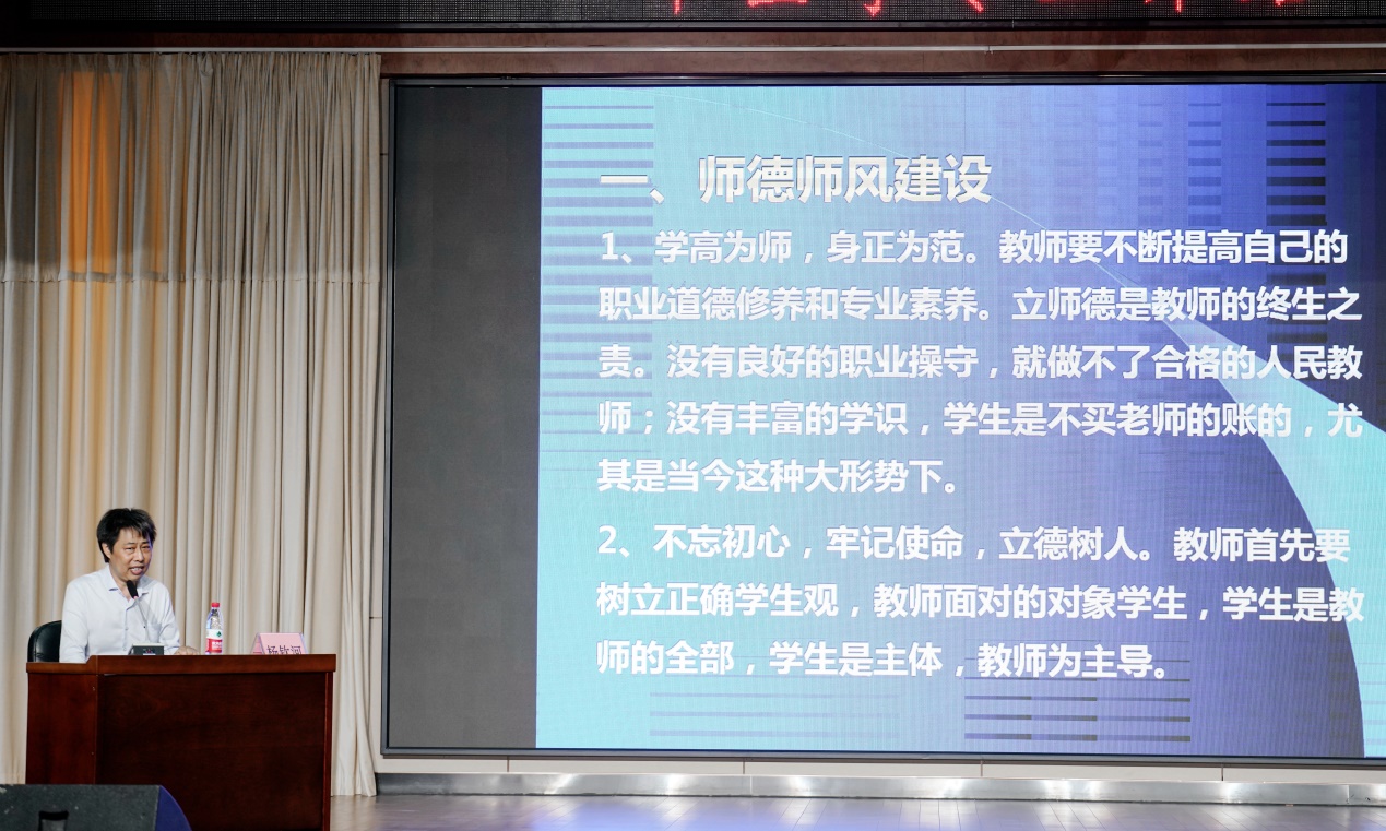 楊院長首先結(jié)合當(dāng)前師德師風(fēng)建設(shè)的要求,提出了作為中醫(yī)藥學(xué)院的教師要不忘初心,牢記使命,以立德樹人為根本宗旨,不斷提高自己的職業(yè)道德修養(yǎng)和專業(yè)素養(yǎng),自覺維護(hù)教師形象,尤其是在一些大是大非面前要有正確的立場和觀點(diǎn),真心呵護(hù)與關(guān)愛學(xué)生,做一名合格的人民教師,成為弘揚(yáng)中醫(yī)藥學(xué)的領(lǐng)路人,努力培養(yǎng)合格的中醫(yī)藥應(yīng)用型人才。