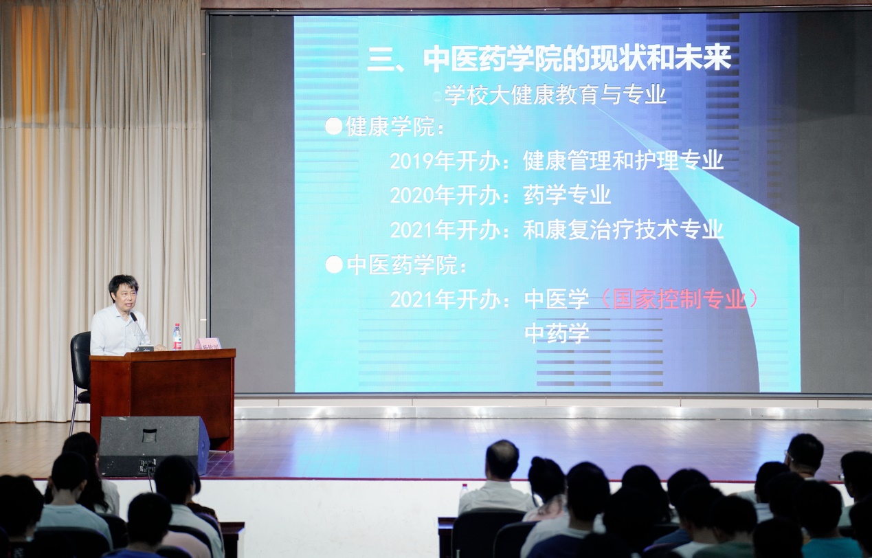 在談到中醫(yī)藥職業(yè)教育與精英教育的關(guān)系時,楊院長結(jié)合中醫(yī)藥教育發(fā)展現(xiàn)狀與學(xué)生們的不同發(fā)展需求,為學(xué)生們今后的職業(yè)發(fā)展規(guī)劃做了認(rèn)真務(wù)實(shí)的分析和指導(dǎo)。他還語重心長地勉勵同學(xué)們要“胸懷理想,不負(fù)韶華”, 并提出“修德為先,筑基為本,重視經(jīng)典,博彩眾長,勤于實(shí)踐"的要求。楊院長深入淺出的現(xiàn)場講解,讓同學(xué)們受益匪淺。隨后中藥學(xué)專業(yè)帶頭人、暨南大學(xué)藥學(xué)院中藥系原主任于榮敏教授從專業(yè)發(fā)展的角度對同學(xué)們提出了殷切期望;中醫(yī)系副主任吳海鳳作為青年教師代表在發(fā)言中表示,要虛心向老教師們學(xué)習(xí),不斷提升自己的專業(yè)素養(yǎng),堅持立德樹人,關(guān)愛每一位學(xué)生,教好每一節(jié)課,努力做一名合格的人民教師,為培養(yǎng)國家和社會需要的中醫(yī)藥合格人才作出積極貢獻(xiàn)。