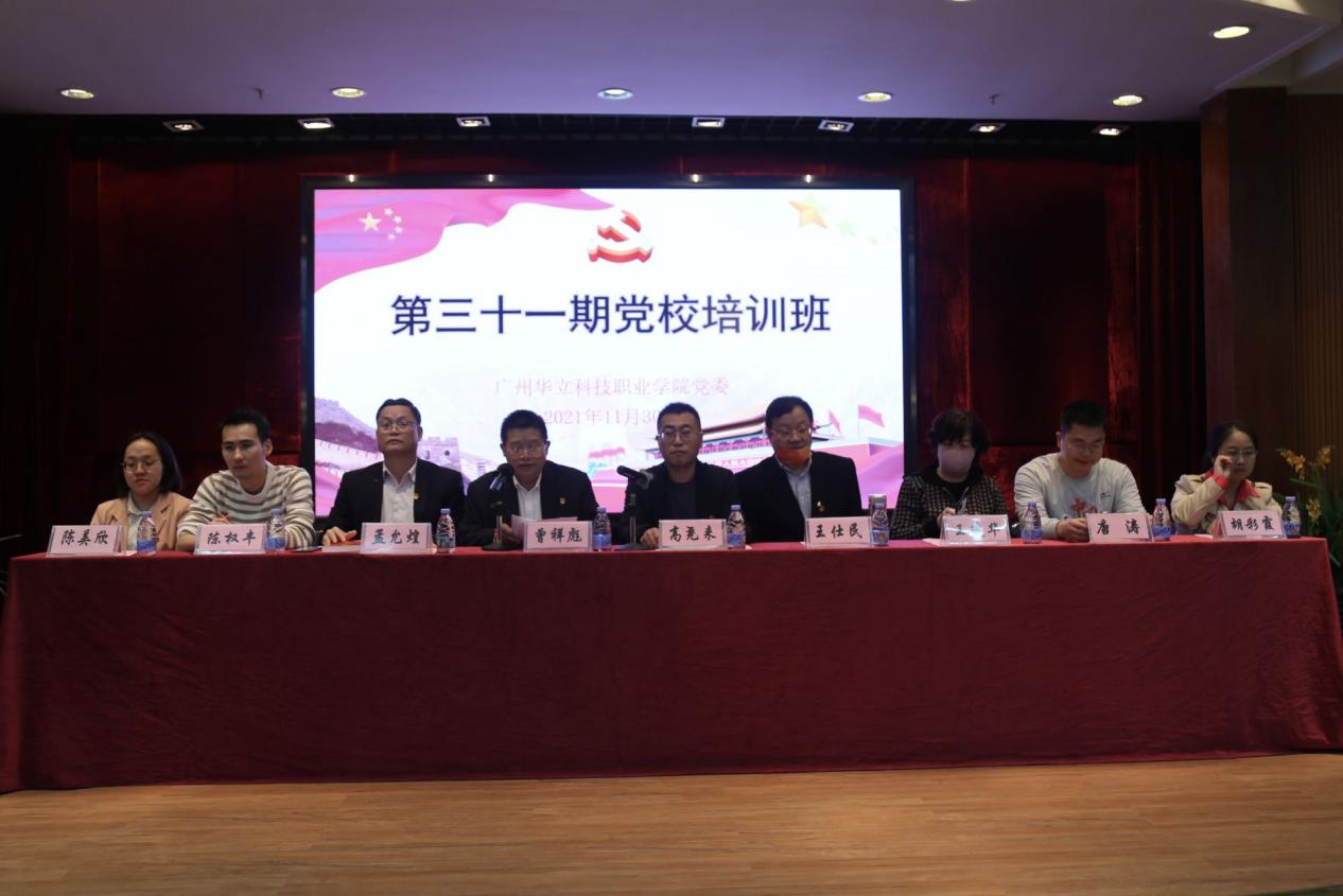 2021年11月30日,廣州華立科技職業(yè)學(xué)院第31期黨校在東區(qū)1號報告廳開班,學(xué)校黨委副書記、副校長高堯來、各二級學(xué)院黨組織負責(zé)人、第三十一期黨校學(xué)員參會。會議由學(xué)校黨委委員、電力學(xué)院黨總支書記曾祥彪主持。