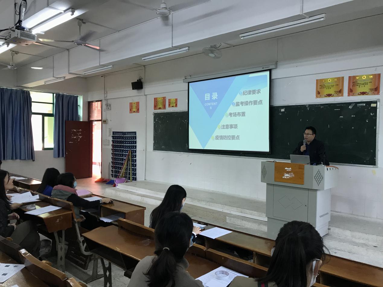 學(xué)校領(lǐng)導(dǎo)高度重視此次工作,并提前做好工作計劃及布置。14日下午15:50分,易健民副校長主持召開“全國大學(xué)生英語四六級考試廣州華立科技職業(yè)學(xué)院考點防疫工作協(xié)調(diào)會”。會上易健民副校長強(qiáng)調(diào),各部門要高度重視此次工作,要前置性重點排查途經(jīng)高風(fēng)險地區(qū)的考生及密接者,嚴(yán)格按照省教育廳下達(dá)的防疫要求保障考試順利進(jìn)行。會上對疫情防控常態(tài)化下的考試組織、考務(wù)管理、安全保密、考場消毒、醫(yī)療保障等各環(huán)節(jié)作了嚴(yán)密部署。成立了本次考試工作領(lǐng)導(dǎo)小組,由易健民副校長帶隊,學(xué)校疫情防控領(lǐng)導(dǎo)小組成員及相關(guān)職能部門負(fù)責(zé)人全員上陣。重點強(qiáng)調(diào)全體工作人員以高度的責(zé)任感和大局意識對待考試組織工作,充分發(fā)揮團(tuán)隊協(xié)作精神,做好考試考務(wù)和科學(xué)防疫工作,確保本次考試順利進(jìn)行。