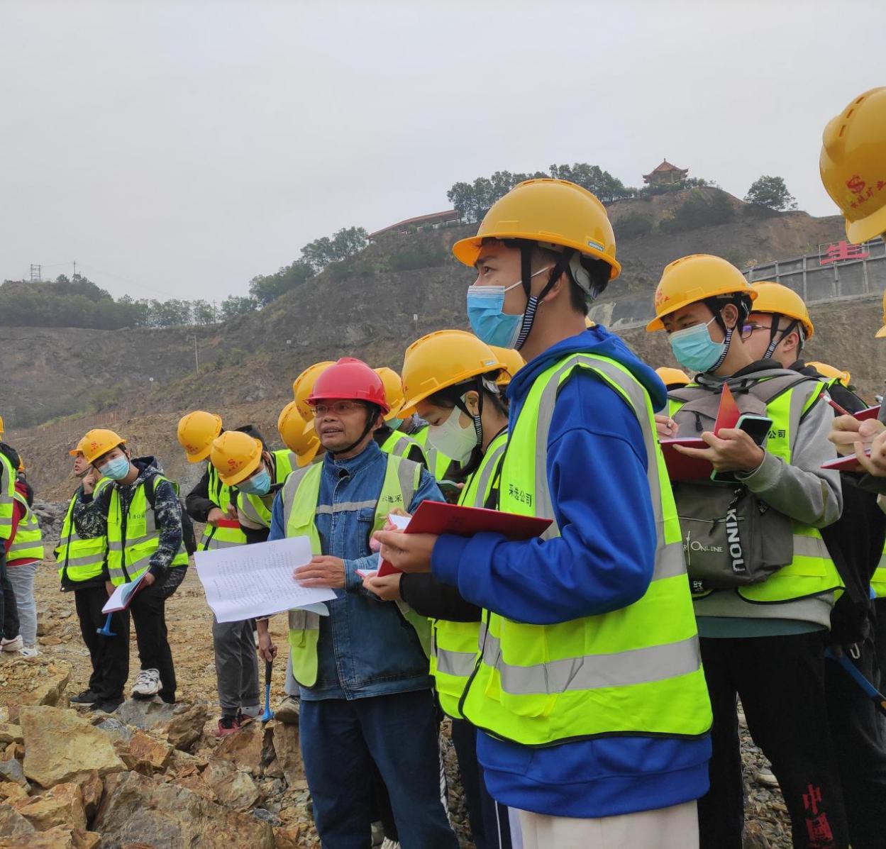 (學(xué)生對(duì)硫鐵礦露天平臺(tái)進(jìn)行觀察和學(xué)習(xí))
