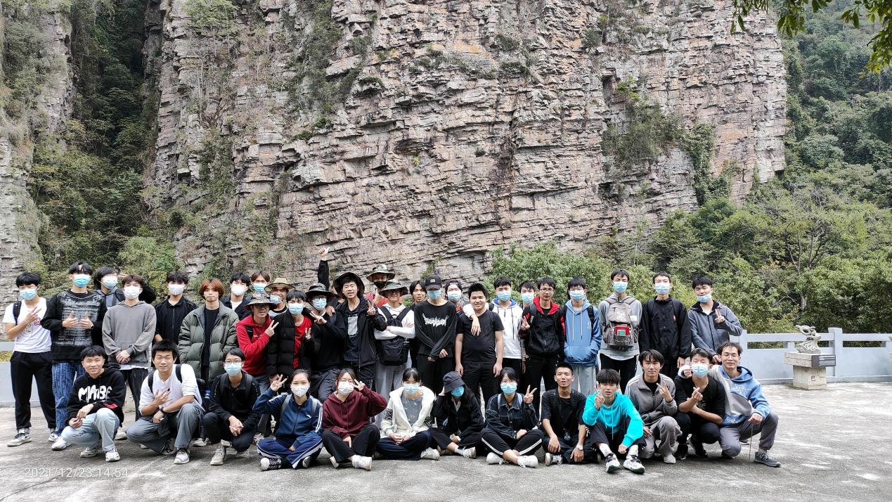 (實(shí)習(xí)學(xué)生在千層峰前的留影)