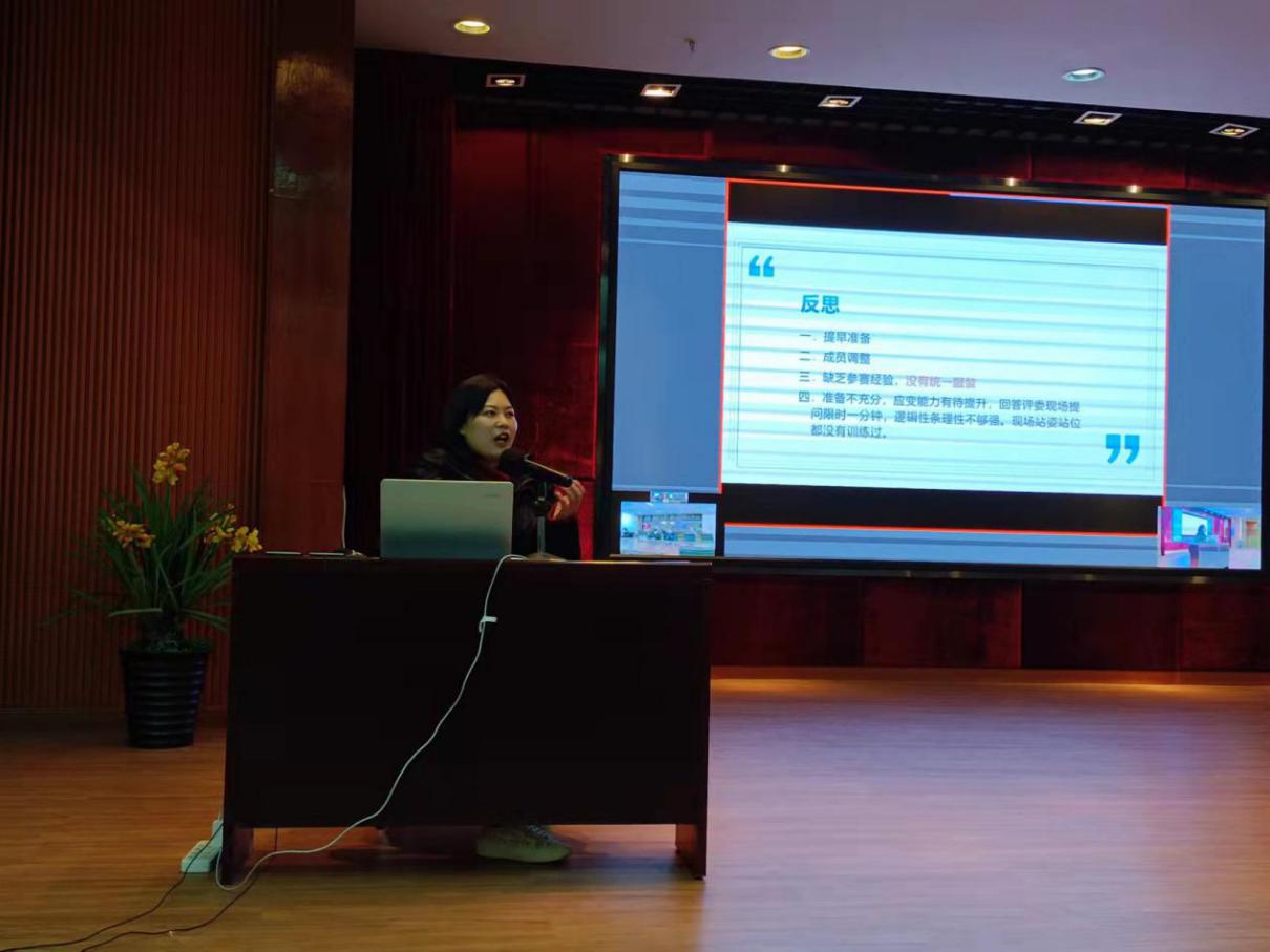 隨后,參加2021年全國職業(yè)院校技能大賽教學能力比賽國賽遴選的團隊教師梁穎茵分享了省賽與國賽(遴選)的規(guī)則異同,梳理了參賽的時間軸,總結(jié)了參賽中的經(jīng)驗教訓及不足,建議各參賽團隊要早做準備。梁老師同樣強調(diào)教學設(shè)計要體現(xiàn)課程思政、信息化教學及教育教學改革等要素,提醒各參賽團隊、參賽作品思維破局,并著重對教學視頻的拍攝提出了很好的指導意見。
