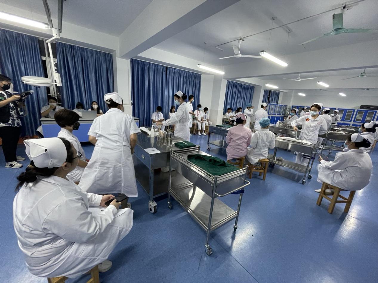 14名教師和107名學生參加了這次活動。學校督導辦副主任曾紀杰教授等督導親臨現(xiàn)場指導。經(jīng)過5月11日“單人徒手心肺復蘇術”項目比賽和5月12日“無菌技術操作”項目比賽,本次活動圓滿落下帷幕。