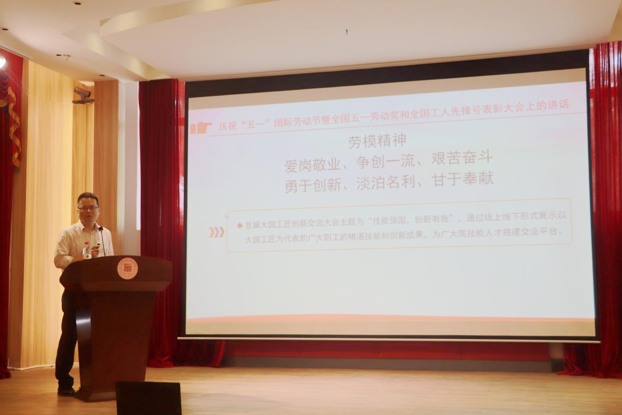 為深入學(xué)習(xí)貫徹習(xí)近平總書(shū)記關(guān)于職業(yè)教育的重要指示精神和落實(shí)《關(guān)于全面加強(qiáng)新時(shí)代大中小學(xué)勞動(dòng)教育的意見(jiàn)》要求,在校園大力宣傳勞模精神、勞動(dòng)精神、工匠精神,加強(qiáng)對(duì)廣大師生的勞動(dòng)教育,唱響“勞動(dòng)光榮、技能寶貴、創(chuàng)造偉大”的時(shí)代主旋律。5月20日上午,華立職院特邀廣東省勞動(dòng)模范米輝同志到校為師生做“弘揚(yáng)勞模精神,爭(zhēng)做時(shí)代新人”主題報(bào)告。根據(jù)學(xué)校防疫要求,本次報(bào)告會(huì)采取線(xiàn)上線(xiàn)下結(jié)合的方式同時(shí)進(jìn)行,報(bào)告會(huì)現(xiàn)場(chǎng)安排在云浮校區(qū)圖書(shū)館報(bào)告廳,學(xué)校校長(zhǎng)助理王洪艷、教務(wù)處副處長(zhǎng)胡仁火以及部分師生代表在現(xiàn)場(chǎng)聆聽(tīng)了報(bào)告。