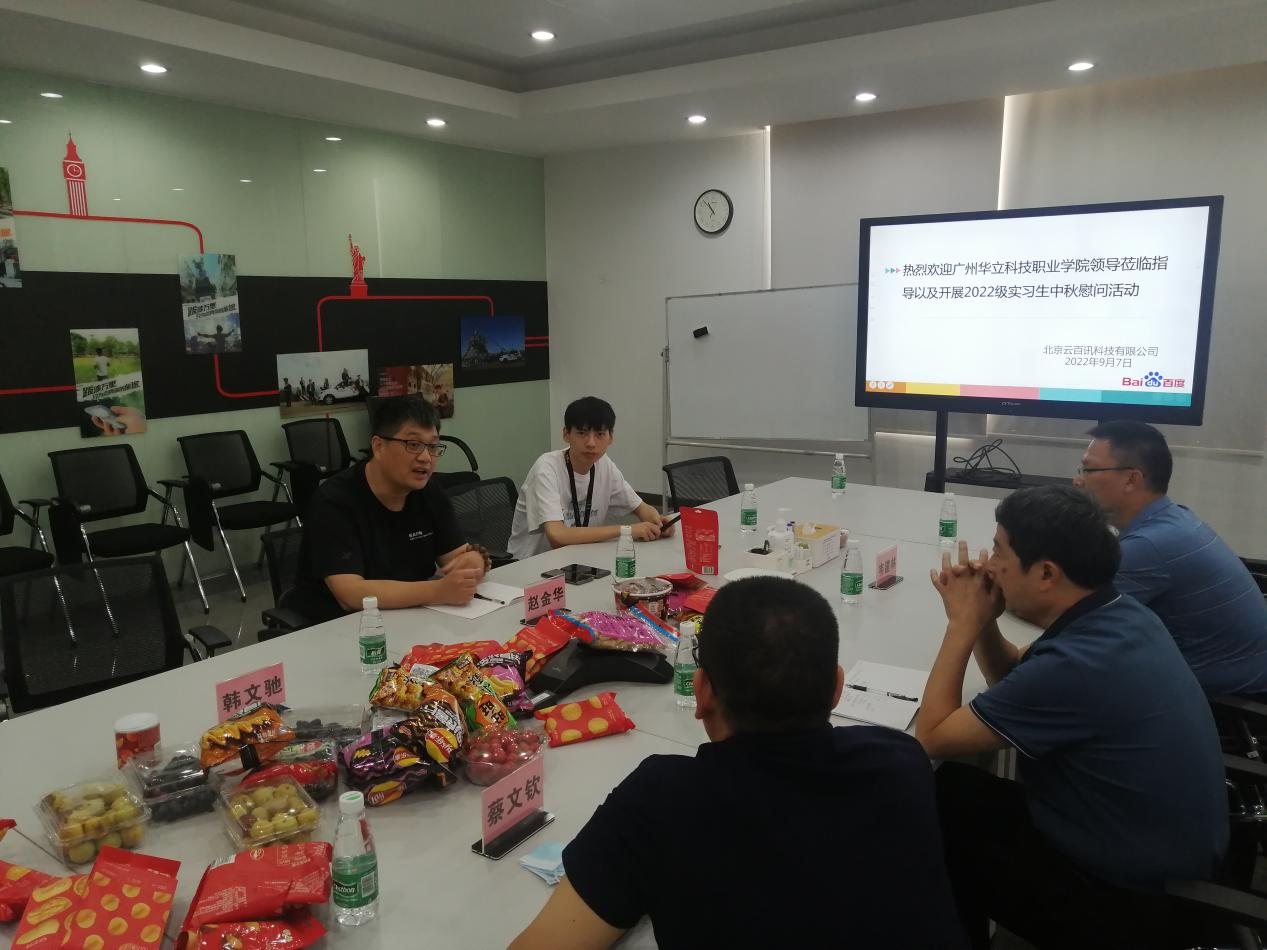 9月7日,中秋佳節(jié)之際,廣州華立科技職業(yè)學(xué)院校長(zhǎng)易健民、校外教學(xué)與就業(yè)管理處副科長(zhǎng)韋建林、計(jì)算機(jī)信息工程學(xué)院辦公室主任蔡文欽、校外教學(xué)副主任黃志強(qiáng)老師一行到北京云百訊科技有限公司佛山分公司看望2020級(jí)實(shí)習(xí)學(xué)生,開(kāi)展中秋節(jié)慰問(wèn)活動(dòng)。
