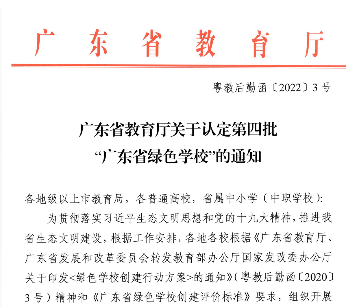 日前,廣東省教育廳印發(fā)《廣東省教育廳關(guān)于認(rèn)定第四批“廣東省綠色學(xué)校”的通知》,我校云浮校區(qū)榮獲“廣東省綠色學(xué)校”稱號(hào)!