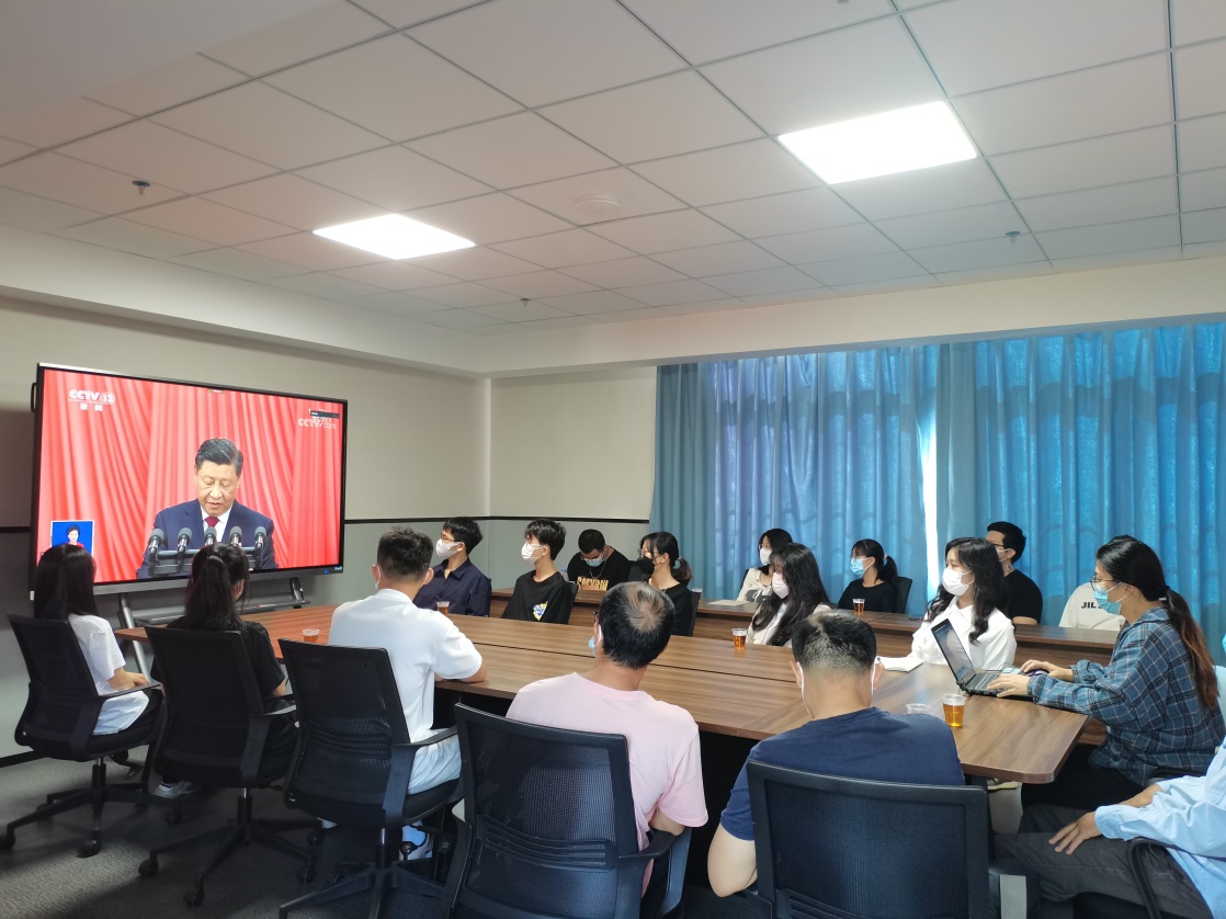 學(xué)校領(lǐng)導(dǎo)和教師代表在云浮校區(qū)收看黨的二十大開幕式直播