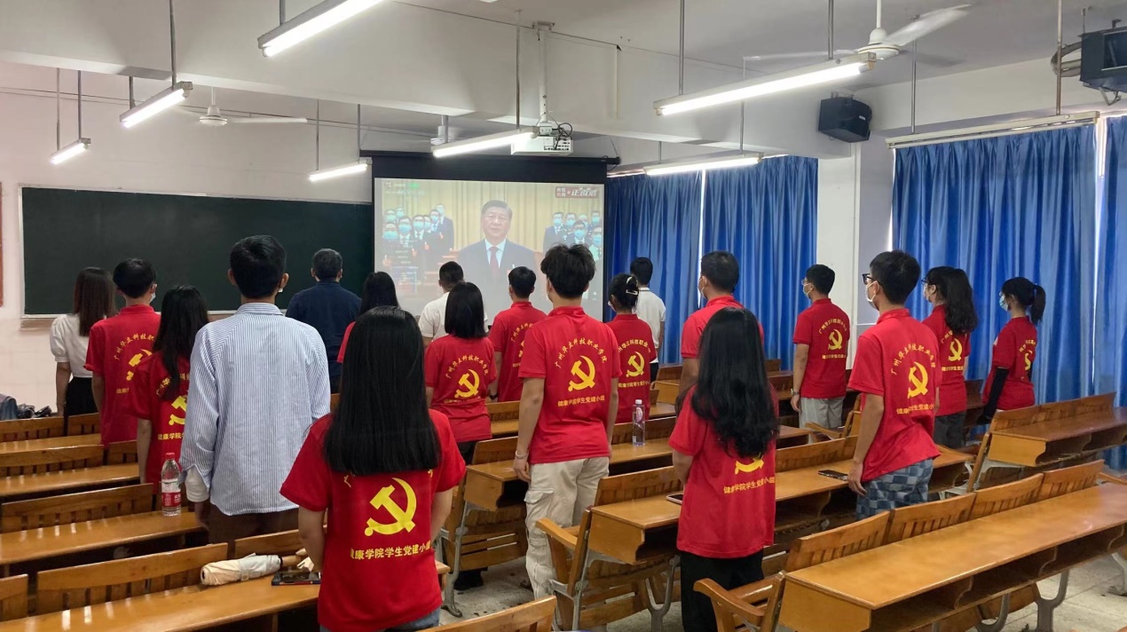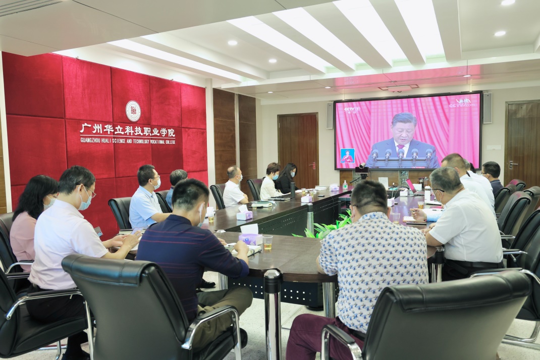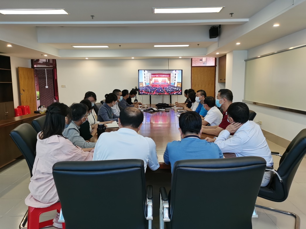 學(xué)校領(lǐng)導(dǎo)和中層干部在廣州校區(qū)集中收看黨的二十大開幕式直播
