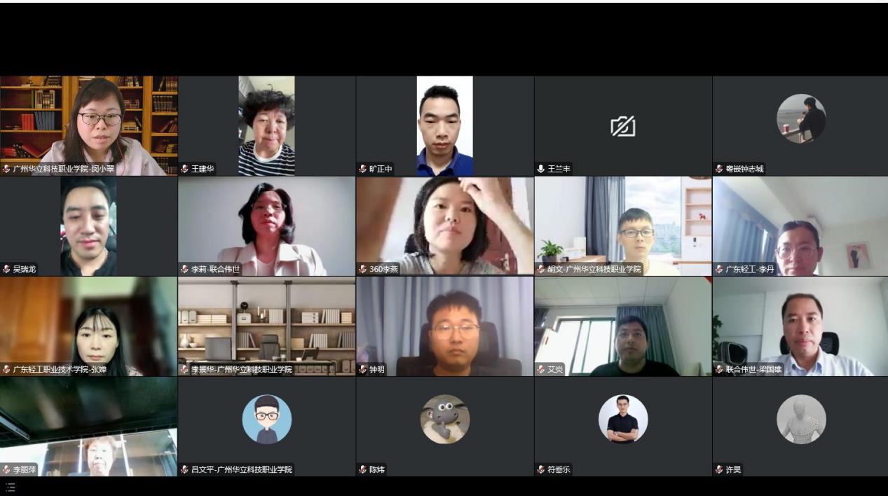 2022年11月21日上午,計(jì)算機(jī)學(xué)院組織召開22級人才培養(yǎng)方案論證會(huì),此次會(huì)議連線云浮校區(qū)。邀請廣東輕工職業(yè)技術(shù)學(xué)院信息技術(shù)學(xué)院教學(xué)副院長張嬋、工業(yè)軟件教研室翟鴻雁教授、云計(jì)算教研室李丹主任、智能產(chǎn)品教研室艾炎主任、人工智能教研室許昊主任,中國高科集團(tuán)股份有限公司產(chǎn)教融合事業(yè)部華南區(qū)負(fù)責(zé)人吳瑞龍先生,北京聯(lián)合偉世科技股份有限公司教研總監(jiān)李莉女士、北京聯(lián)合偉世科技股份有限公司銷售總監(jiān)梁國雄先生,360集團(tuán)高級銷售經(jīng)理李燕女士,廣州粵嵌通信科技股份有限公司鐘志誠先生,廣東宏圖信息技術(shù)有限公司曠正中先生參加線上討論。學(xué)院院長王建華教授、學(xué)科帶頭人李麗萍教授、教學(xué)主任閔小翠副教授以及各系主任等參加會(huì)議。會(huì)議由行政副主任王蘭豐老師主持。
