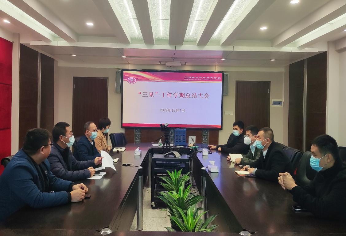 2022年12月7日下午,廣州華立科技職業(yè)學(xué)院在行政樓305會(huì)議室舉行“三見(jiàn)”工作學(xué)期總結(jié)大會(huì)。學(xué)校黨委書(shū)記陳良聲、黨委副書(shū)記兼副校長(zhǎng)高堯來(lái)、校長(zhǎng)助理葉春桃、學(xué)生處處長(zhǎng)宋海泉、保衛(wèi)處處長(zhǎng)陳勝軍、總務(wù)處處長(zhǎng)李桂林、人事處副處長(zhǎng)邱志宏、生活指導(dǎo)科曹廣福等部分教職工代表參加了會(huì)議。會(huì)議由學(xué)生處處長(zhǎng)宋海泉主持,黨委副書(shū)記兼副校長(zhǎng)高堯來(lái)作“三見(jiàn)”工作總結(jié)講話(huà)。