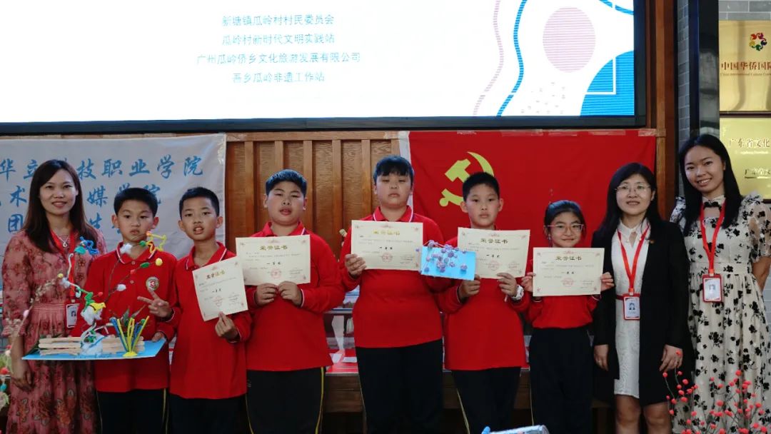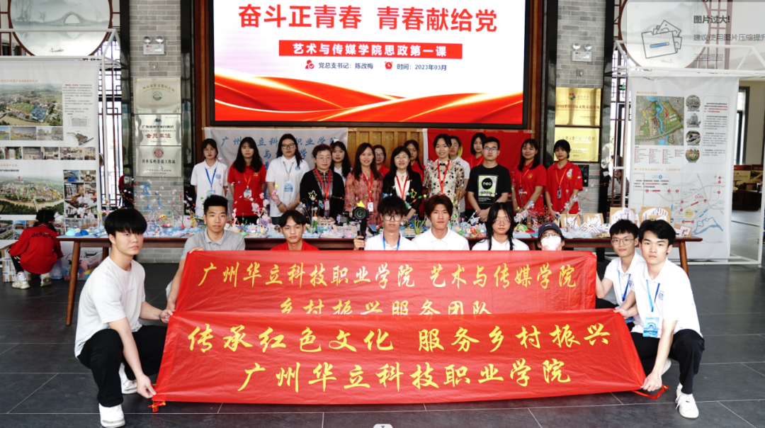 廣州華立科技職業(yè)學(xué)院藝術(shù)與傳媒學(xué)院鄉(xiāng)村振興團(tuán)隊(duì)在試驗(yàn)小學(xué)與研學(xué)代表留念