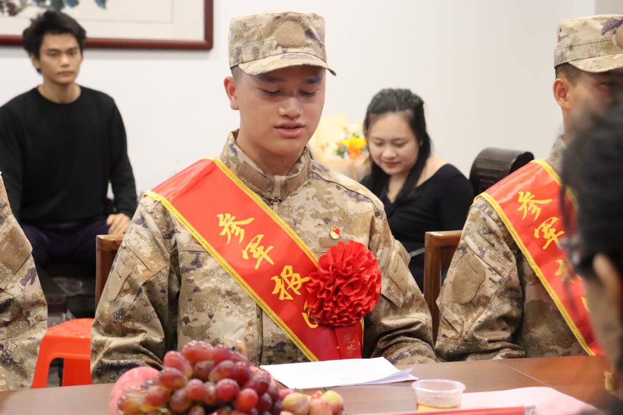 新兵入伍歡送會(huì)在行政樓3樓會(huì)議室召開,4名新兵身著戎裝,頭戴軍帽,胸佩大紅花和彩帶,神采飛揚(yáng)、意氣風(fēng)發(fā)。會(huì)議共六項(xiàng)議程,首先由新兵代表林浩作了振奮人心的發(fā)言,他表示有這個(gè)特別的機(jī)會(huì)去學(xué)習(xí)鍛煉和報(bào)效祖國感到無比光榮,將會(huì)在部隊(duì)努力學(xué)習(xí),不怕吃苦,堅(jiān)決服從命令,聽從指揮,刻苦訓(xùn)練,勤學(xué)本領(lǐng),做到政治合格、軍事過硬、作風(fēng)優(yōu)良、紀(jì)律嚴(yán)明、保障有力、精忠報(bào)國,為國家的和平與安寧扛好槍、站好崗,表達(dá)了自己保家衛(wèi)國的堅(jiān)定決心。第二第三項(xiàng)議程是分別是新兵家長和輔導(dǎo)員發(fā)表講話,希望即將入伍的4名新兵牢記初心,用汗水磨練意志,用熱血鑄就軍魂,扎根軍營建功立業(yè),成就精彩人生,為家鄉(xiāng)增光添彩。