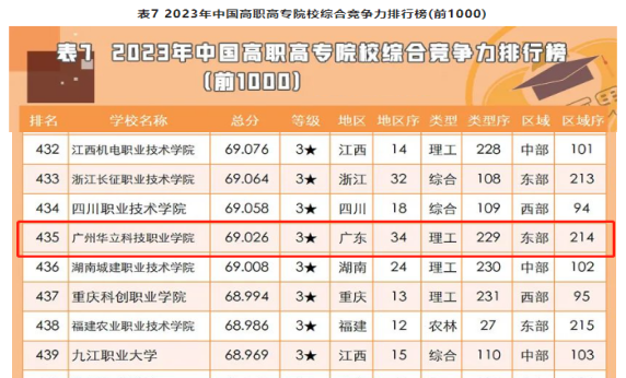 近日,金平果連續(xù)第十二次推出中國(guó)高職院校競(jìng)爭(zhēng)力排行榜。在2022年“金平果排行榜”(又稱中評(píng)榜)即中國(guó)高職高專院校綜合競(jìng)爭(zhēng)力排行榜(1000強(qiáng))中,我校在全國(guó)1519所高職中排名第435位,比上年前進(jìn)了41位,在廣東省排名第34位,在廣東省民辦高職院校中排名第3位,這也是我校連續(xù)第二年獲得廣東省同類高校排名第三位的佳績(jī)。
