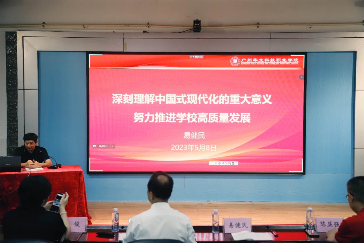 開班儀式后,學(xué)校黨委副書記、校長(zhǎng)易健民以“深刻理解中國式現(xiàn)代化的重大意義,努力推進(jìn)學(xué)校高質(zhì)量發(fā)展”為主題作專題輔導(dǎo)報(bào)告。易健民從我國現(xiàn)代化道路的艱難探索、中國式現(xiàn)代化的科學(xué)內(nèi)涵、中國式現(xiàn)代化的偉大意義、努力推進(jìn)學(xué)校高質(zhì)量發(fā)展四個(gè)方面開展專題輔導(dǎo)報(bào)告,重點(diǎn)講述如何通過強(qiáng)化規(guī)范達(dá)標(biāo)、加強(qiáng)內(nèi)涵建設(shè)、推進(jìn)改革創(chuàng)新、加強(qiáng)科研和社會(huì)服務(wù)、加強(qiáng)產(chǎn)教融合全面推動(dòng)學(xué)校事業(yè)高質(zhì)量發(fā)展。