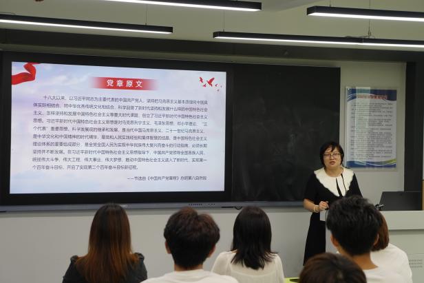 專題黨課節(jié)選自《中國共產(chǎn)黨章程》總綱第八自然段。馬校長進行細致講解并強調(diào)大家要認真研學黨章內(nèi)容,深入學習貫徹習近平新時代中國特色社會主義思想。