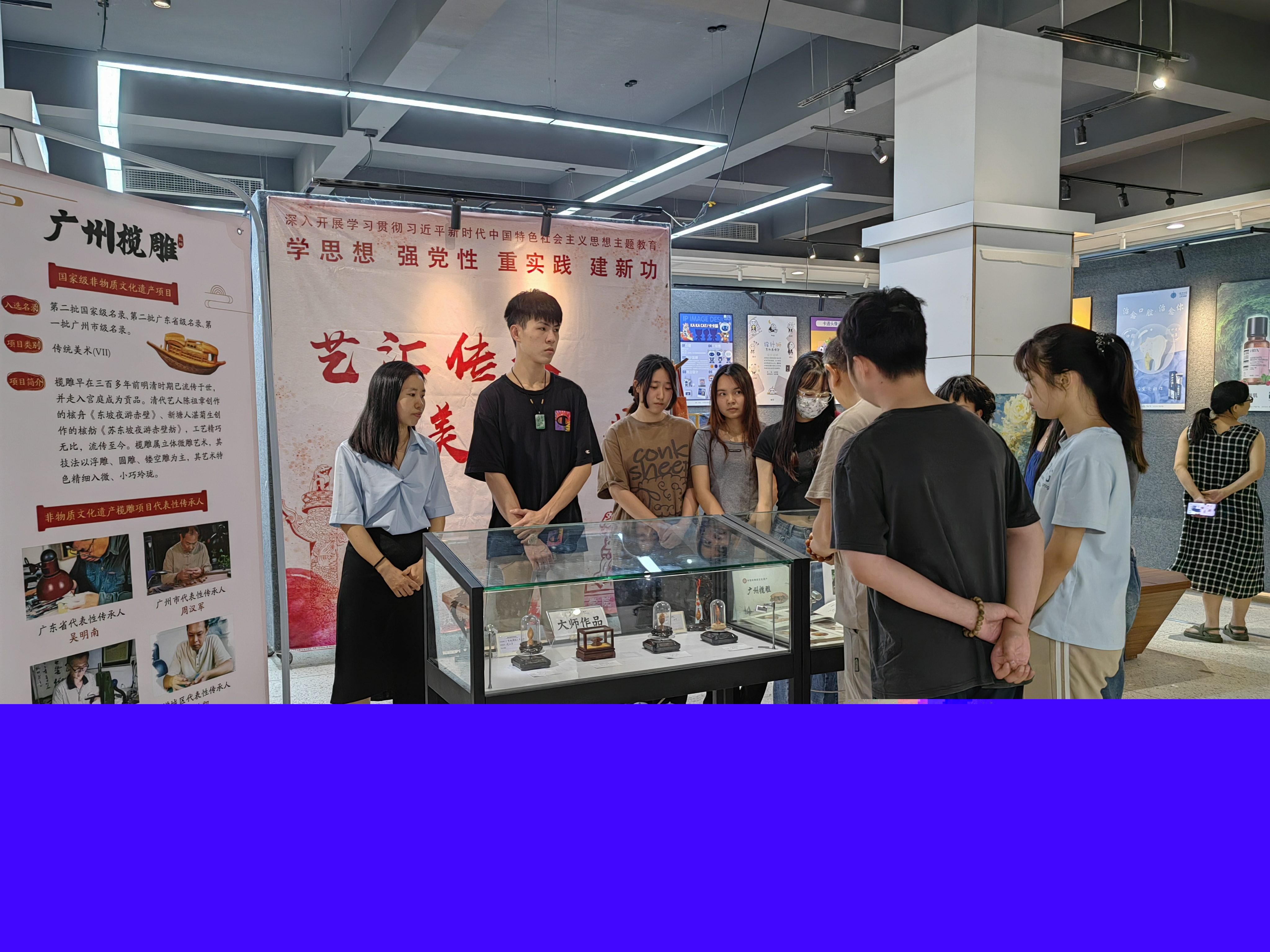 我校省級中華優(yōu)秀傳統(tǒng)文化傳承基地欖雕大師工作室也展出了精美的師生系列欖雕藝術(shù)作品,欖雕傳承人周漢軍大師也現(xiàn)場科普欖雕知識和技藝,師生們都感受到了欖雕的獨(dú)特魅力。通過傳統(tǒng)植染技藝和欖雕技藝傳承,增強(qiáng)文化自信,堅(jiān)持弘揚(yáng)和傳承中華優(yōu)秀傳統(tǒng)文化。