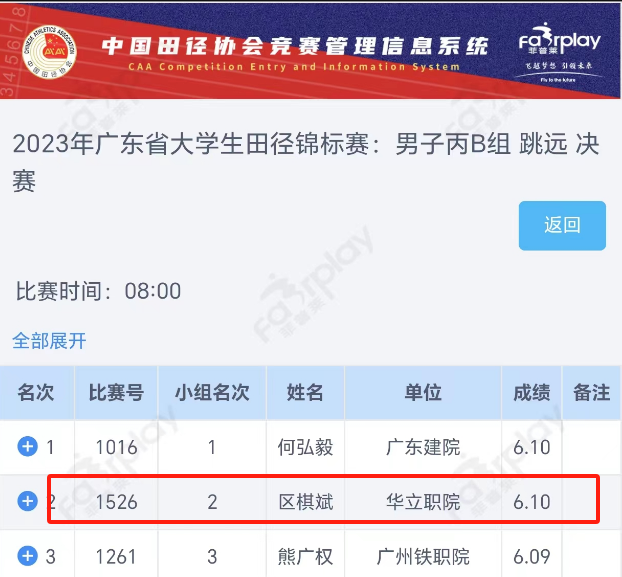 12月3日上午,從2023年廣東省大學生田徑錦標賽的賽場傳來捷報,我校田徑隊奮勇拼搏,在比賽中獲得多個獎項。其中,2023級體育教育專業(yè)梁乾同學勇奪男子乙A組110米欄冠軍!2022級建筑監(jiān)理專業(yè)區(qū)棋彬同學獲男子丙B組跳遠第二名、跳高第四名,劉觀忠、黃磊分別獲男子乙A組鉛球第五名、第九名,趙根德同學獲男子乙A組1500米第五名、3000米第六名;林德佳同學獲男子乙A組100米第八名(我校是全省唯一進100米決賽的高職院校)。邱桂彬同學獲得女子丙組100米第十名,200米第九名。我校獲全省乙A組團體總分第18名(我校是全省唯一進前18強的高職院校)。