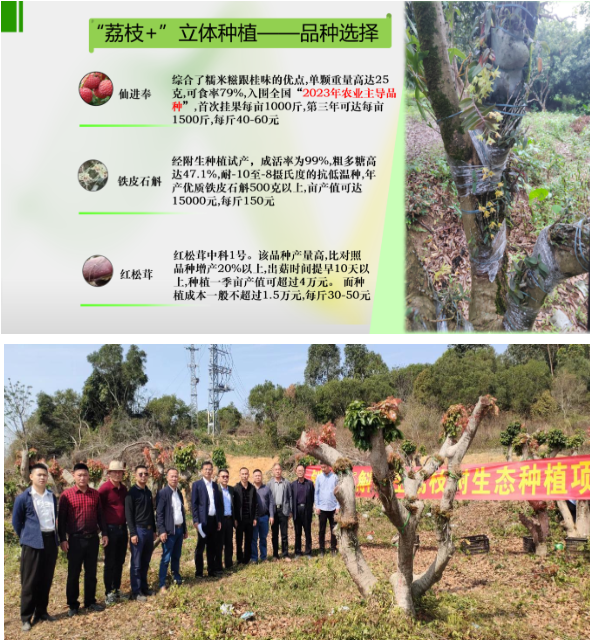 我校此次獲獎案例為《荔枝+立體種植模式賦能鄉(xiāng)村振興》。2021年9月,《荔枝樹上種石斛》被廣東省科技廳立項為廣東省駐鎮(zhèn)幫鎮(zhèn)扶村農(nóng)村科技特派員項目,資助經(jīng)費30萬元,團隊已在汕尾陸豐市推進示范基地建設(shè)200余畝,學(xué)校所在地增城區(qū)白面石村、增城馬屋村、瓜嶺村等建立了多個推廣基地。項目已進一步拓展成荔枝樹上種石斛、樹下種松茸、荔枝品種改良的立體經(jīng)濟模式。學(xué)校鄉(xiāng)村振興工作獲廣東省科學(xué)技術(shù)廳以《石斛花開荔枝園,鄉(xiāng)村振興展風(fēng)采》在學(xué)習(xí)強國平臺上報道,2022年人民日報和廣州日報分別以《科技特派員團隊助力革命老區(qū)白面石村鄉(xiāng)村振興工作》《圍觀!荔枝樹上種了名貴藥材》為題重點報道了我校鄉(xiāng)村振興新模式?!惰F皮石斛花開荔枝果園,職業(yè)教育助力鄉(xiāng)村振興》入選中國職業(yè)技術(shù)教育學(xué)會《鄉(xiāng)村振興中國職教在行動——職業(yè)教育服務(wù)鄉(xiāng)村振興典型案例》受到魯昕會長的充分肯定和專題推介。