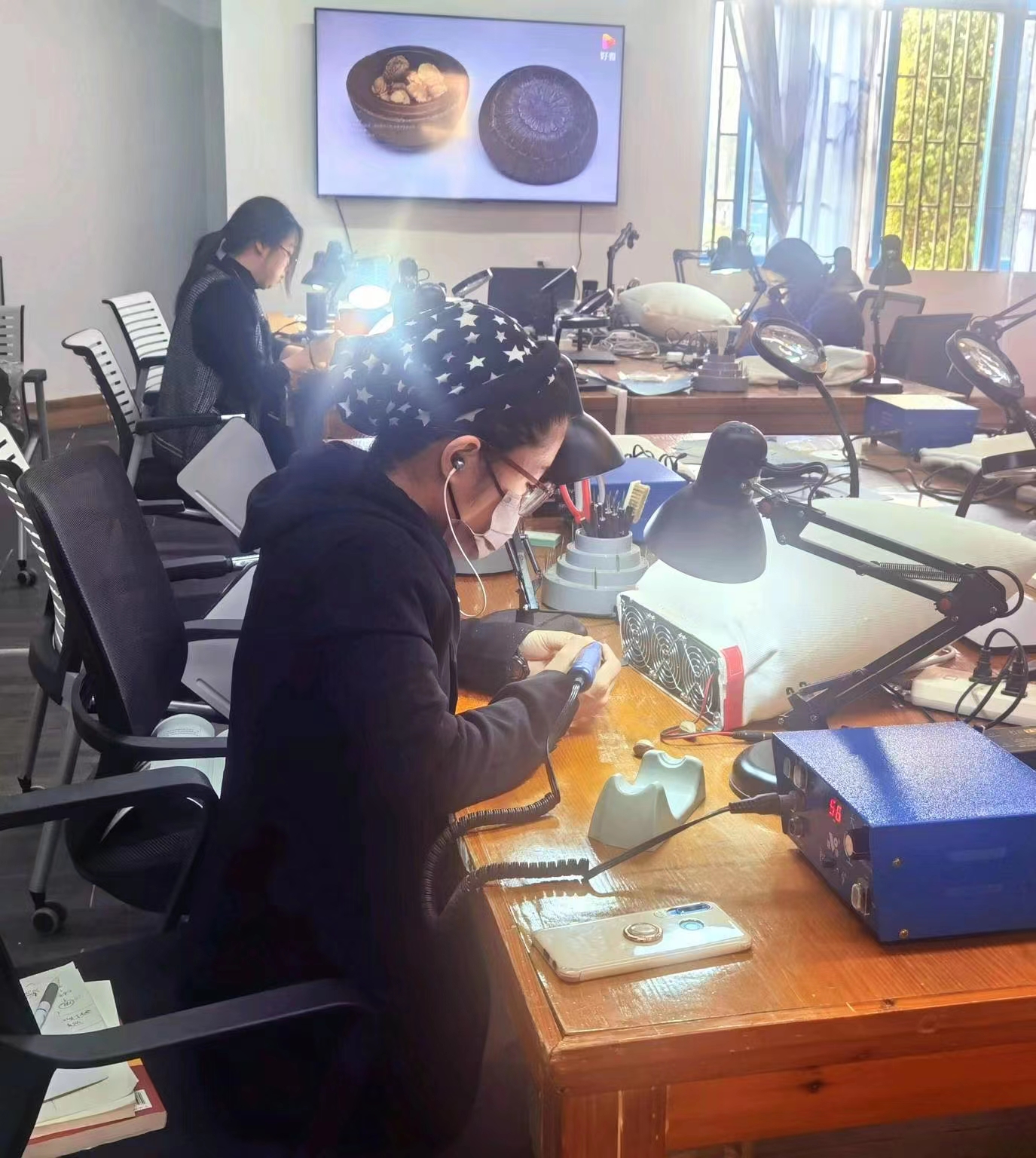 廣州欖雕傳承項目2008年入選第二批國家級非物質(zhì)文化遺產(chǎn)名錄,是增城唯一一項國家級非遺項目,起源于明末清初,至今已有300多年歷史。我校近年以傳承中華優(yōu)秀傳統(tǒng)文化為責(zé)任使命,堅持以文化人,以美育人,引進市級代表性傳承人周漢軍先生成立欖雕藝術(shù)大師工作室,長期開展欖雕文化傳承工作,已將欖雕文化傳承融入人才培養(yǎng),構(gòu)建了“四位一體,德技雙修,普惠社會”的非遺傳承模式,形成了“思政導(dǎo)航,技能助力,聚焦傳承,引領(lǐng)創(chuàng)新”特色。