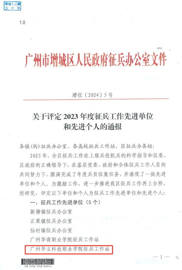 近日,我校征兵工作再次傳來(lái)喜訊,經(jīng)過(guò)層層評(píng)估,榮獲廣州市增城區(qū)2023年度“征兵工作先進(jìn)單位”稱(chēng)號(hào),在2月27日的全省征兵工作會(huì)議中,我校大學(xué)生應(yīng)征入伍工作再次受到省教育廳、省征兵辦通報(bào)表?yè)P(yáng),征兵工作得到了上級(jí)部門(mén)的充分肯定,這份榮譽(yù)不僅是對(duì)我校征兵工作的肯定,也是對(duì)每一位參與此項(xiàng)工作的師生的認(rèn)可。