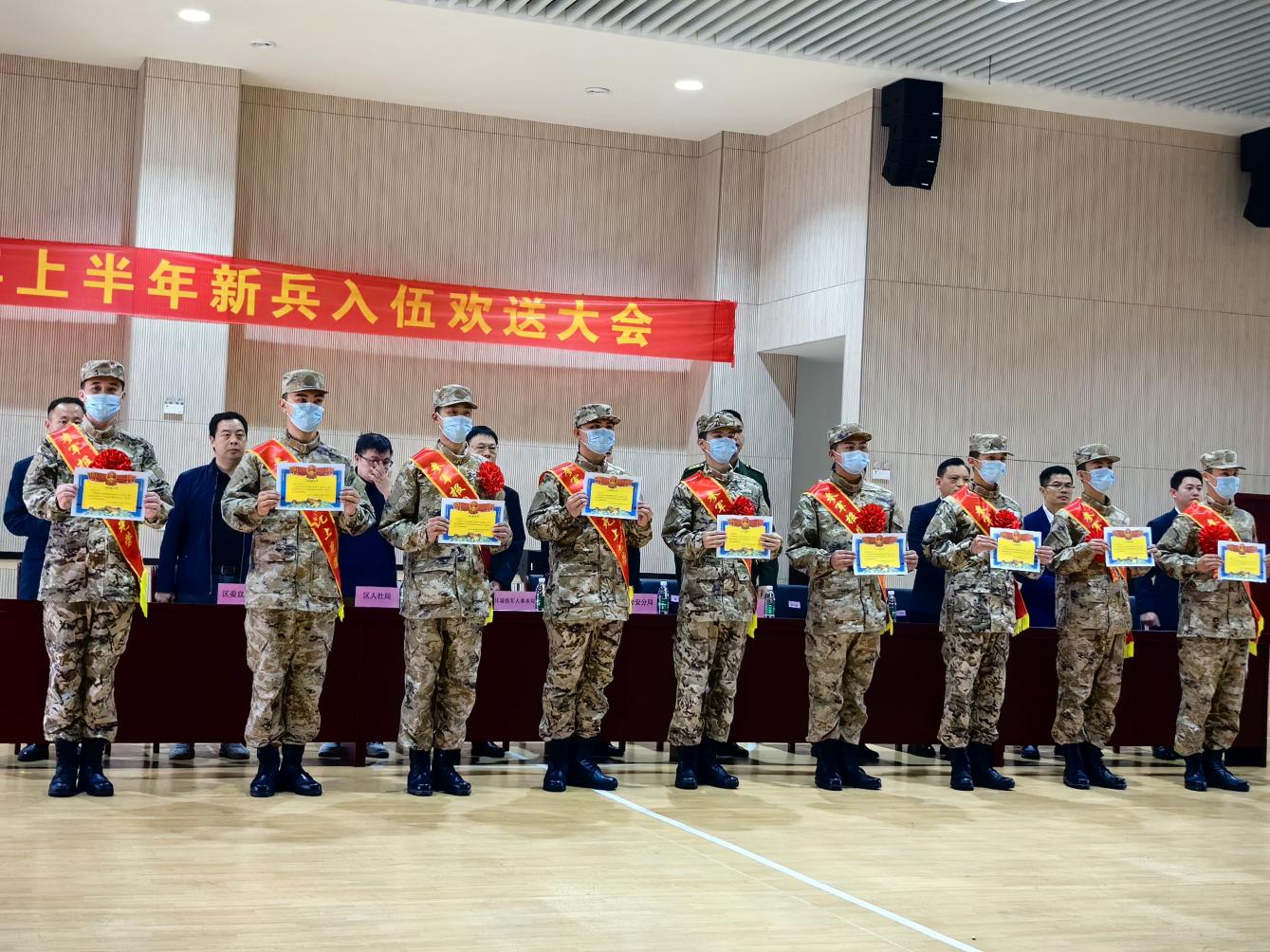 武裝部部長(zhǎng)陳勝軍與春季入伍新兵們合影