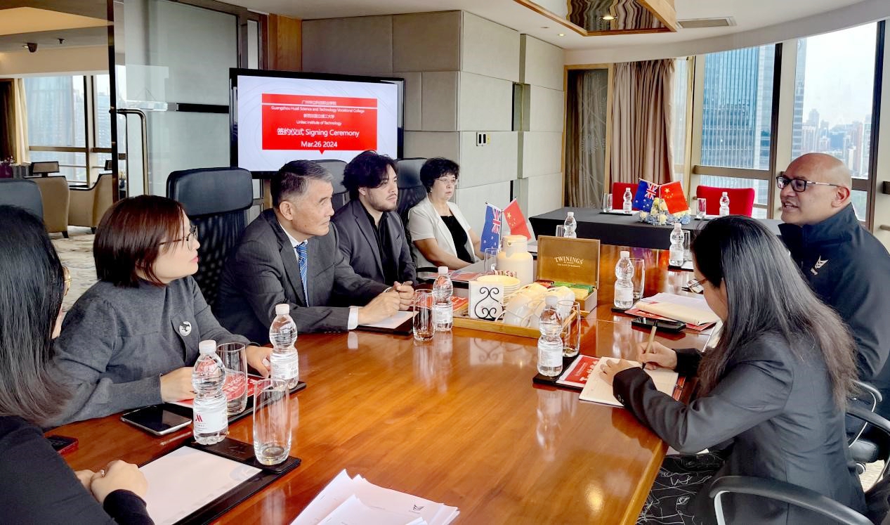 在職教“出海”計(jì)劃與對(duì)外合作交流工作的指引下,廣州華立科技職業(yè)學(xué)院為加強(qiáng)國(guó)際交流合作,搭建更優(yōu)質(zhì)的國(guó)際交流平臺(tái),與國(guó)立新西蘭理工學(xué)院-北方理工學(xué)院開(kāi)啟國(guó)際交流合作新篇章。3月26日,華立大學(xué)集團(tuán)首席運(yùn)營(yíng)官?gòu)堅(jiān)5?、廣州華立科技職業(yè)學(xué)院陳德清校長(zhǎng)、廣州華立科技職業(yè)學(xué)院馬俊常務(wù)副校長(zhǎng)、計(jì)算機(jī)學(xué)院王建華院長(zhǎng)、國(guó)際交流中心負(fù)責(zé)人劉婕一行,赴廣州萬(wàn)豪酒店與國(guó)立新西蘭理工學(xué)院-北方理工學(xué)院執(zhí)行校長(zhǎng)Toa Faneva (法 托雅)就合作辦學(xué)項(xiàng)目、共建計(jì)算機(jī)專業(yè)群及文化交流活動(dòng)進(jìn)行了友好洽談,并簽署合作意向書(shū)。