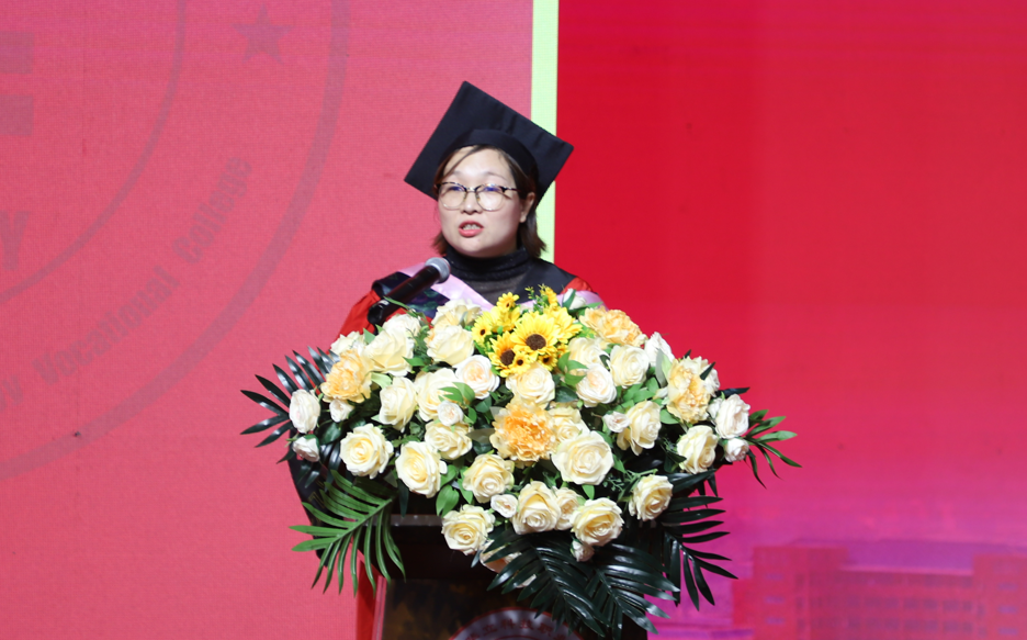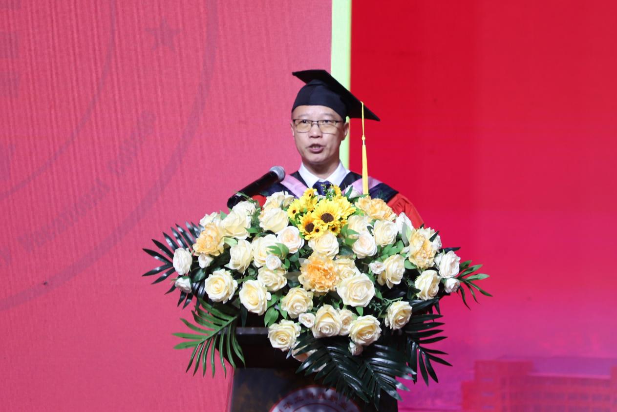典禮上,易健民校長用情真意切的致辭表達了對2024屆畢業(yè)生的熱烈祝賀和深情祝福。在即將離開校園,開啟嶄新的人生之旅之際,易校長對畢業(yè)生提出了三點希望,一是要明確新的航向,實現(xiàn)自我價值。踏進社會后,站在新的起點,要主動將個人理想融入國家發(fā)展藍圖,同頻共振,同聲相應(yīng),爭做“有理想、敢擔(dān)當(dāng)、能吃苦、肯奮斗”的時代好青年,實現(xiàn)自我價值。二是要繼續(xù)學(xué)習(xí),堅持終身學(xué)習(xí)。學(xué)習(xí)專業(yè)技術(shù)知識,打牢理論基礎(chǔ);學(xué)習(xí)為人處世,正確面對順境與困難,妥善處理人際關(guān)系;學(xué)習(xí)傳統(tǒng)文化,提高人文素養(yǎng),豐富精神世界。三是要勇于實踐,繼續(xù)提升技能。在今后的職業(yè)生涯中,要立志做新時代的大國工匠、勞動模范,立足本職、愛崗敬業(yè)、勇于實踐、勤學(xué)苦練,虛心向能工巧匠學(xué)習(xí),掌握技術(shù)要領(lǐng),傳承“秘籍”“竅門”。期待畢業(yè)生們勇敢的放飛青春的夢想,在新征途上展翅高飛。