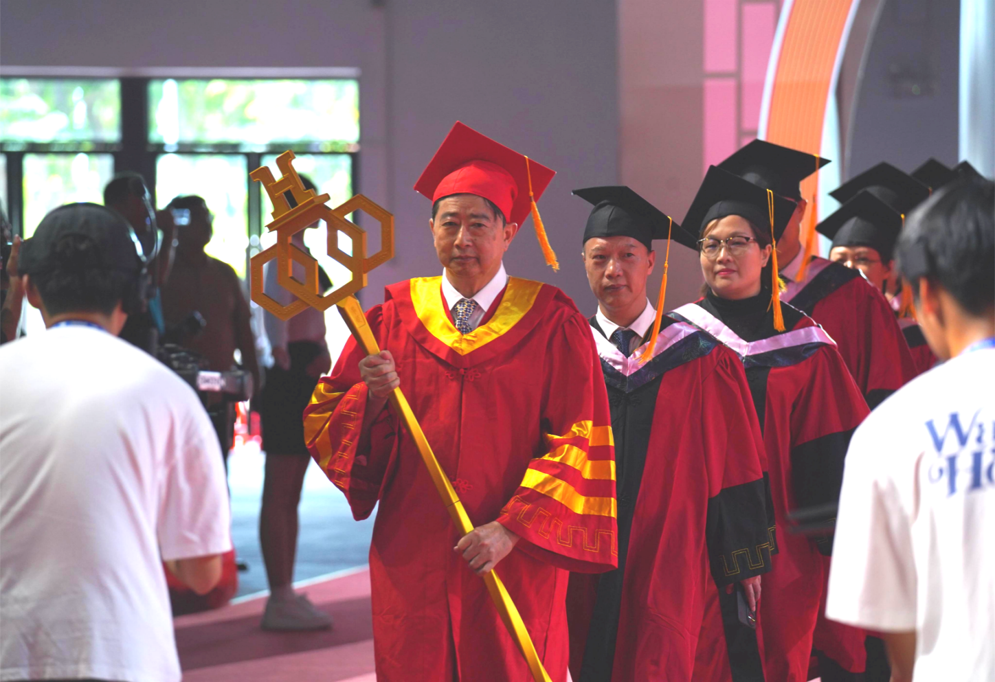 全體在校領(lǐng)導(dǎo),各二級學(xué)院及職能處室負責(zé)人、教師代表、畢業(yè)班輔導(dǎo)員、校友代表及2024屆畢業(yè)生出席了畢業(yè)典禮。典禮由常務(wù)副校長馬俊主持。