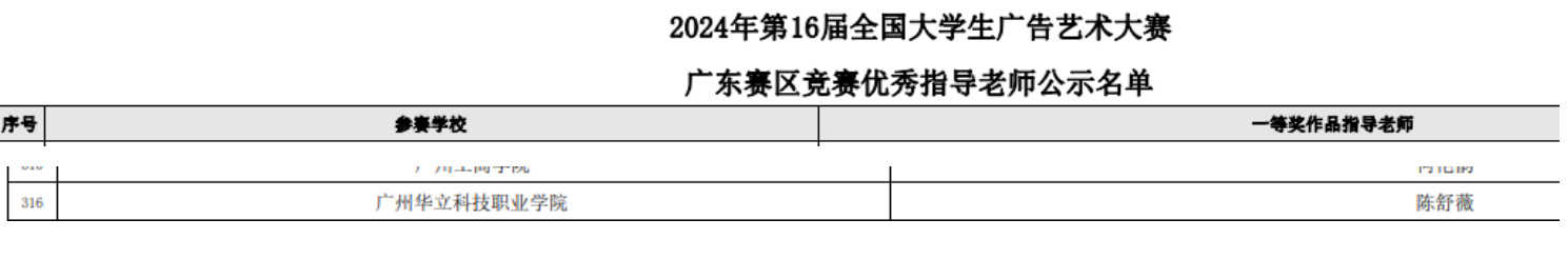 近日,由廣東省教育廳主辦,深圳大學(xué)承辦的2024年第16屆全國大學(xué)生廣告藝術(shù)大賽廣東賽區(qū)競賽獲獎結(jié)果已公示。廣州華立科技職業(yè)學(xué)院藝術(shù)與傳媒學(xué)院選送的作品共獲得一等獎1項、二等獎1項、三等獎1項。同時,陳舒薇老師獲得“優(yōu)秀指導(dǎo)老師獎”。本次所有獲獎作品將報送北京,代表廣東賽區(qū)參加全國總決賽。
