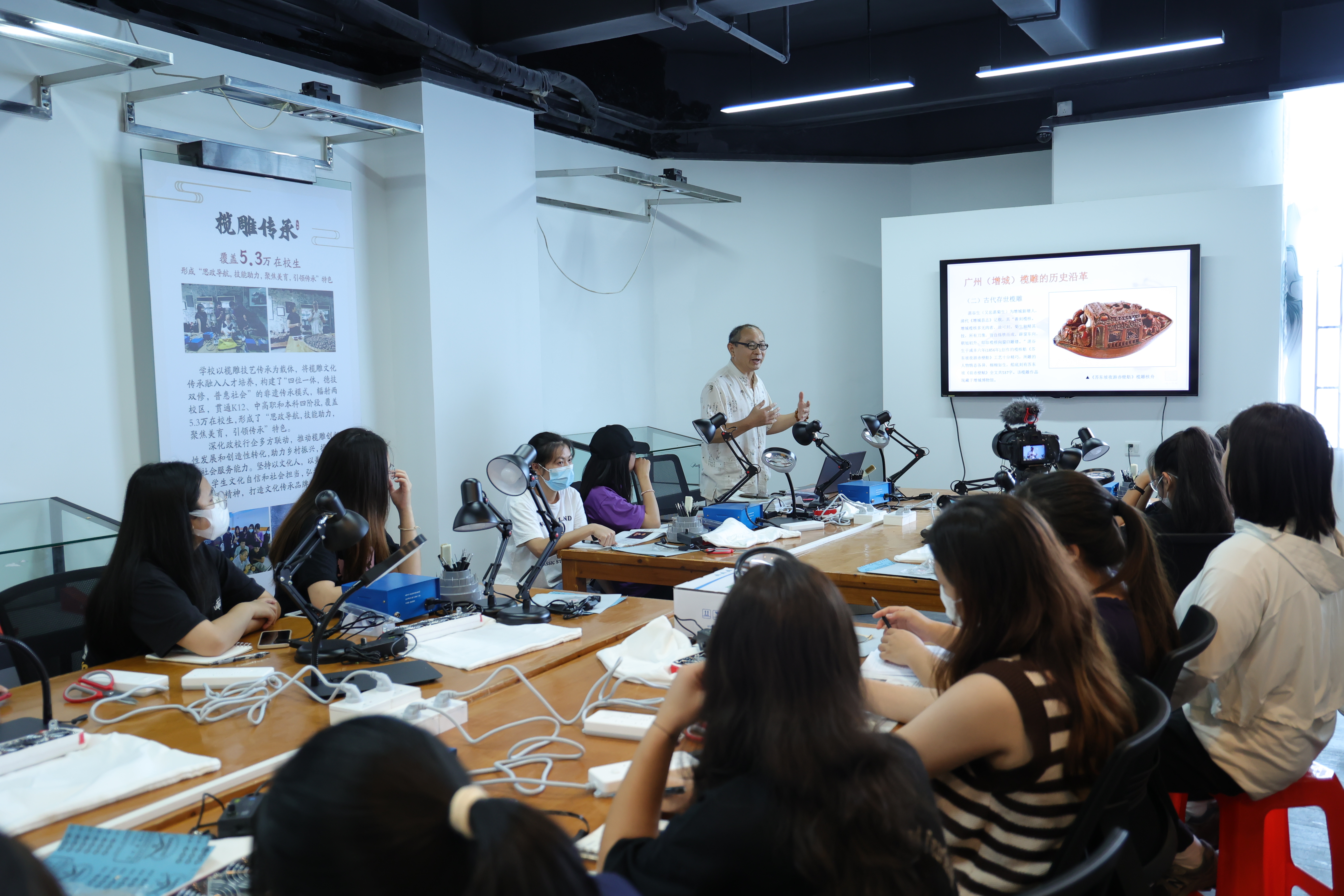 學(xué)校非遺文化宣傳活動已經(jīng)常態(tài)化。從新生入學(xué)教育開始宣傳,定期開展主題講座、專題報告;在校內(nèi)開展欖雕技藝教學(xué)成果展、組織欖雕作品評比大賽等活動,與區(qū)博物館、文化館、團(tuán)委等單位聯(lián)動開展非遺科普宣傳活動。學(xué)校以優(yōu)質(zhì)的教育資源普惠社會,全方位多元化助力欖雕傳承。長期面向中小學(xué)校和社區(qū),開展“非遺進(jìn)校園”工作,已輻射大中小學(xué)和周邊社區(qū)20余個,充分發(fā)揮高校的社會傳承責(zé)任。
