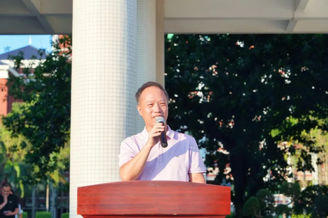 “今天是軍訓(xùn)的第一天,恰逢中秋佳節(jié),我代表學(xué)校祝大家中秋快樂!同時(shí),也希望全體教官從嚴(yán)治教,科學(xué)施訓(xùn),揚(yáng)軍威、樹軍魂。希望全體新生嚴(yán)以律己,積極參訓(xùn),強(qiáng)體魄、練本領(lǐng)?!标惲悸晻浬钋榧恼Z現(xiàn)場所有“戎裝”的2024級(jí)新生們。