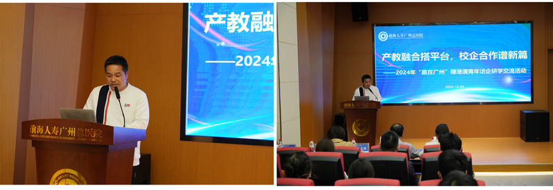 2024年12月3日下午,我校聯(lián)合前海人壽廣州總醫(yī)院和廣州市增城區(qū)人力資源和社會(huì)保障局在前海人壽廣州總醫(yī)院門(mén)診一樓階梯會(huì)議室共同舉行了主題為“產(chǎn)教融合搭平臺(tái),校企合作譜新篇——2024年“贏在廣州”穗港澳青年訪企研學(xué)交流活動(dòng)”。