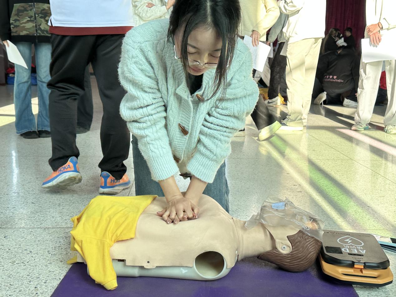 培訓(xùn)內(nèi)容涵蓋了心肺復(fù)蘇、AED(自動(dòng)體外除顫器)使用、海姆立克手法、止血、包扎固定等急救技能。講師們首先通過(guò)生動(dòng)的理論講解,幫助學(xué)員們建立起扎實(shí)的急救理論基礎(chǔ)。隨后,通過(guò)示范操作和手把手指導(dǎo),學(xué)員們得以將理論知識(shí)轉(zhuǎn)化為實(shí)際操作技能,進(jìn)一步加深了對(duì)急救技能的理解和掌握。